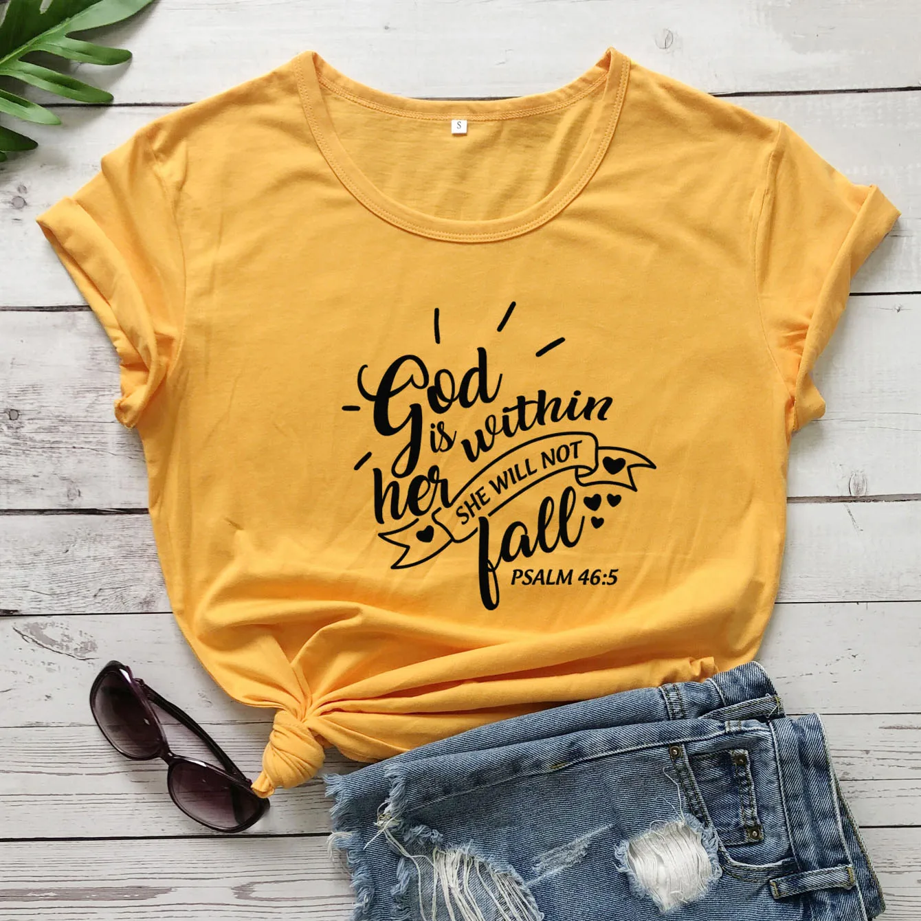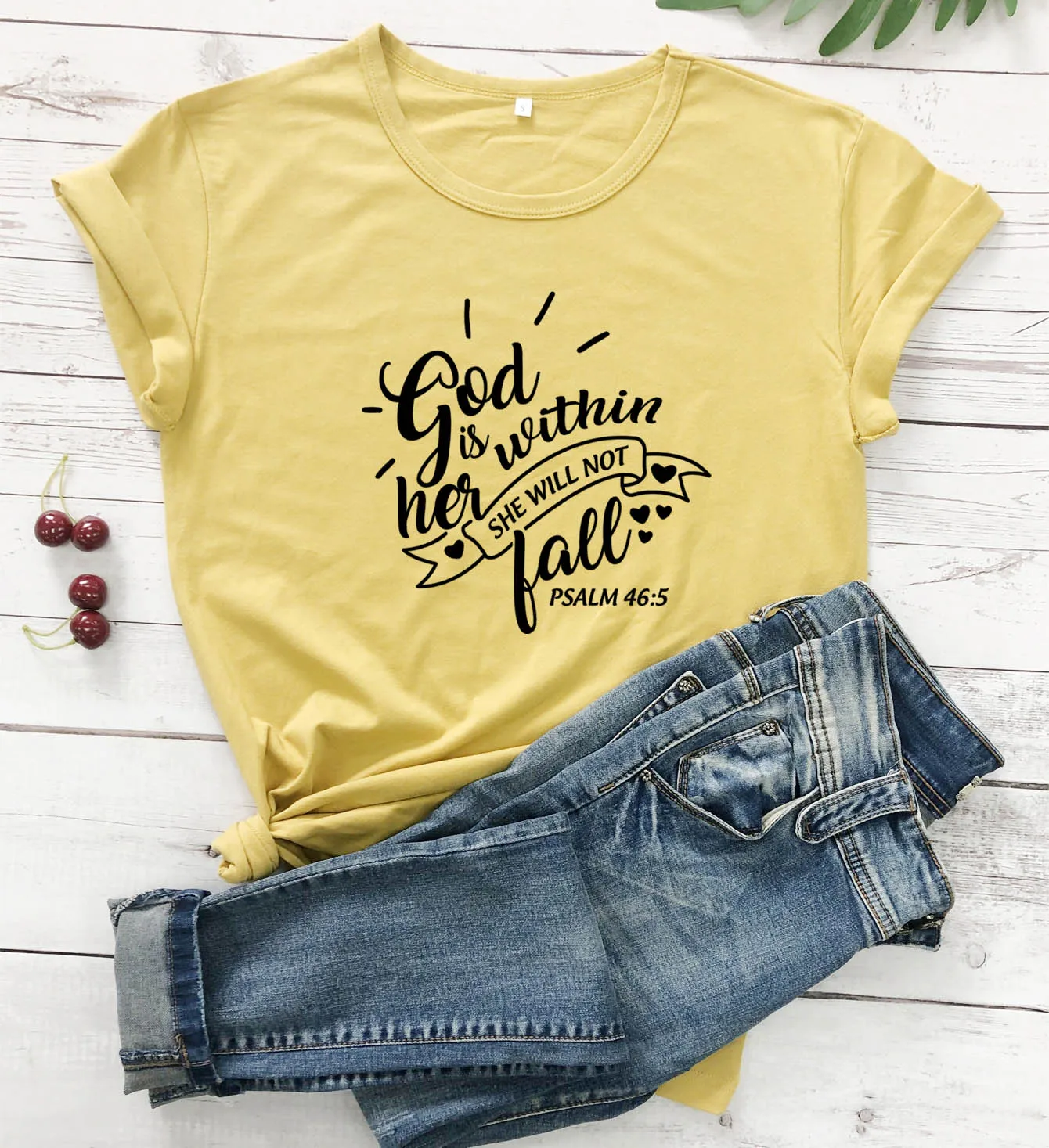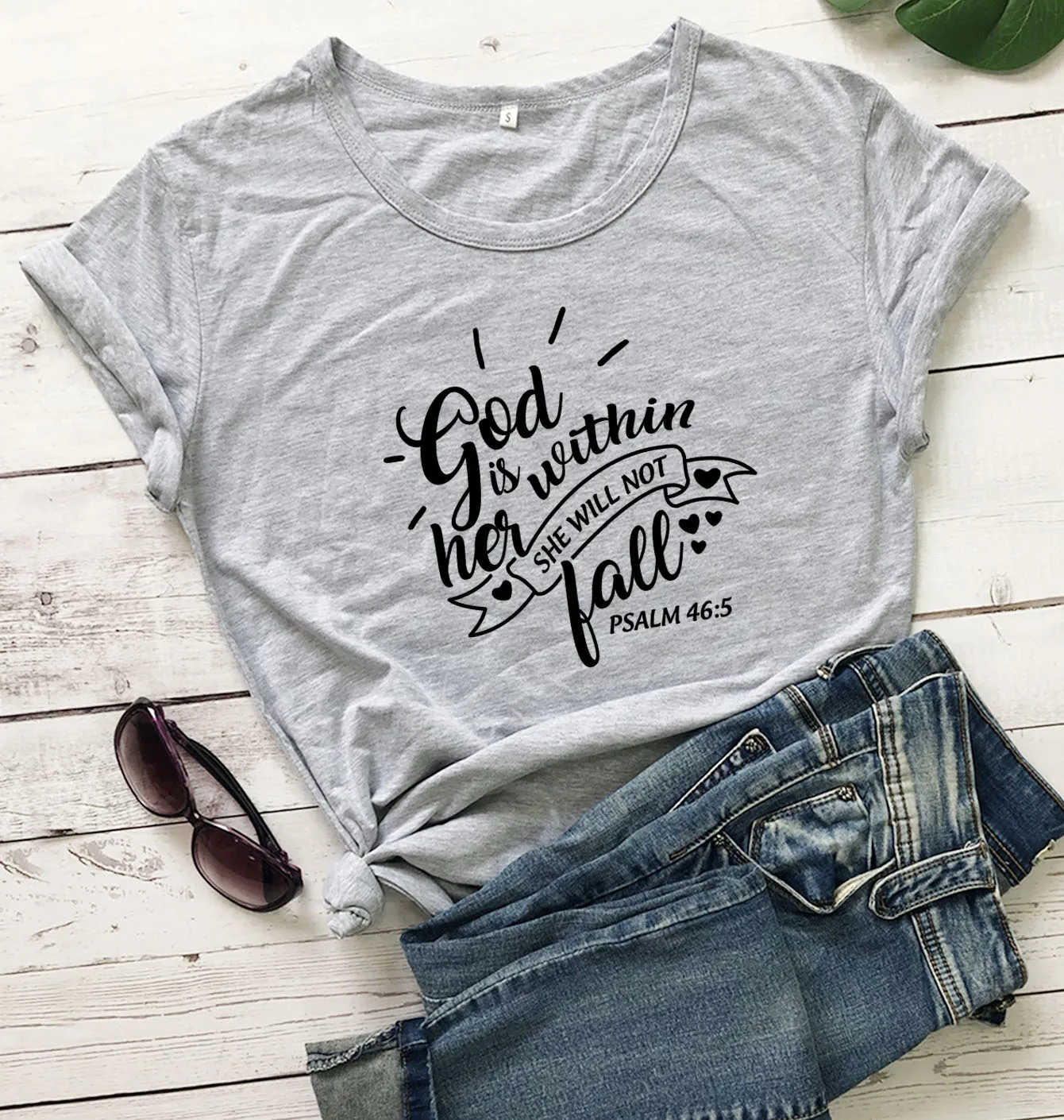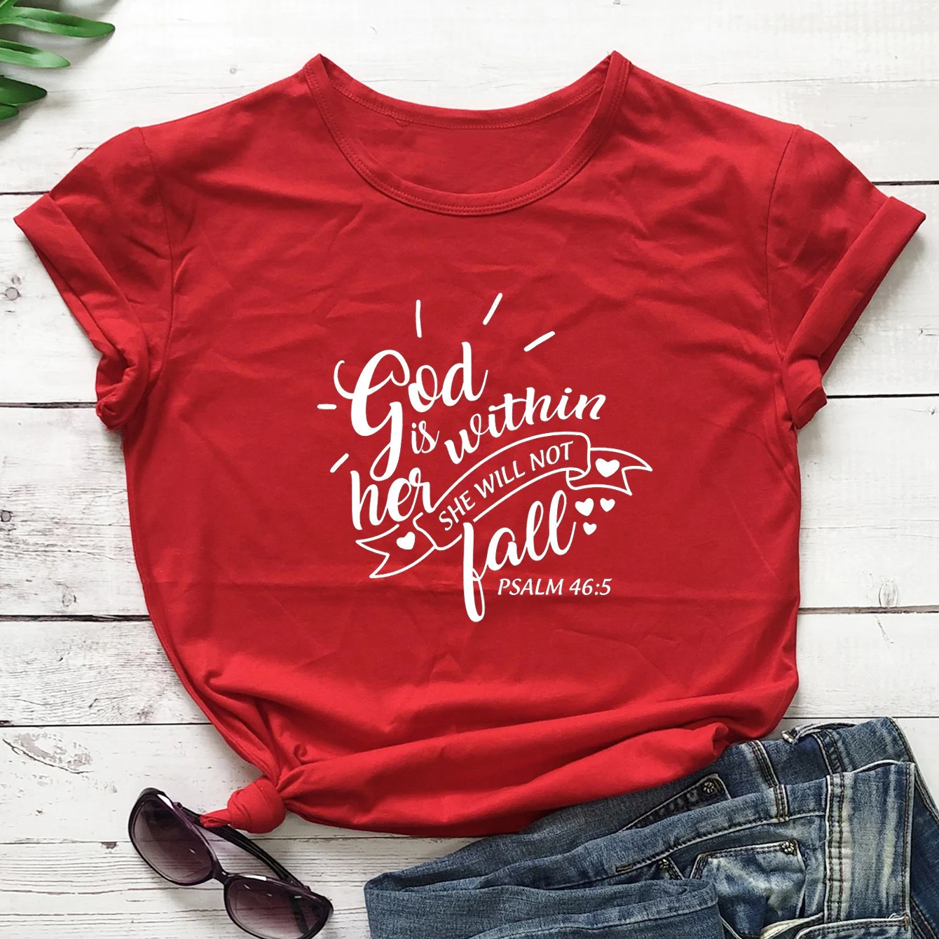 Футболки с надписью God Is inside Her, She Will Not Fall, хлопковые, с Иисусом, Псалом