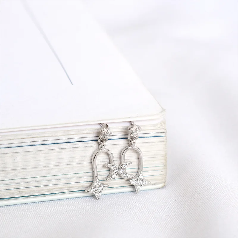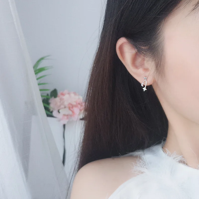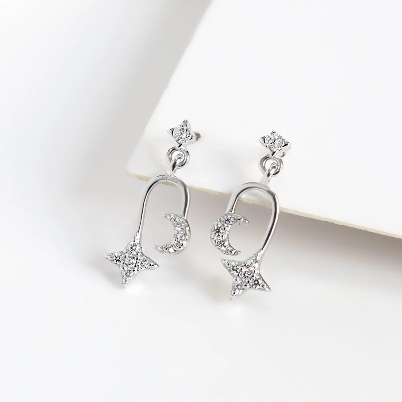 LKO настоящие серьги из стерлингового серебра 925 пробы с цирконом в виде звезды и луны, асимметричные шпильки для ушей для женщин, блестящие элегантные украшения для девочек