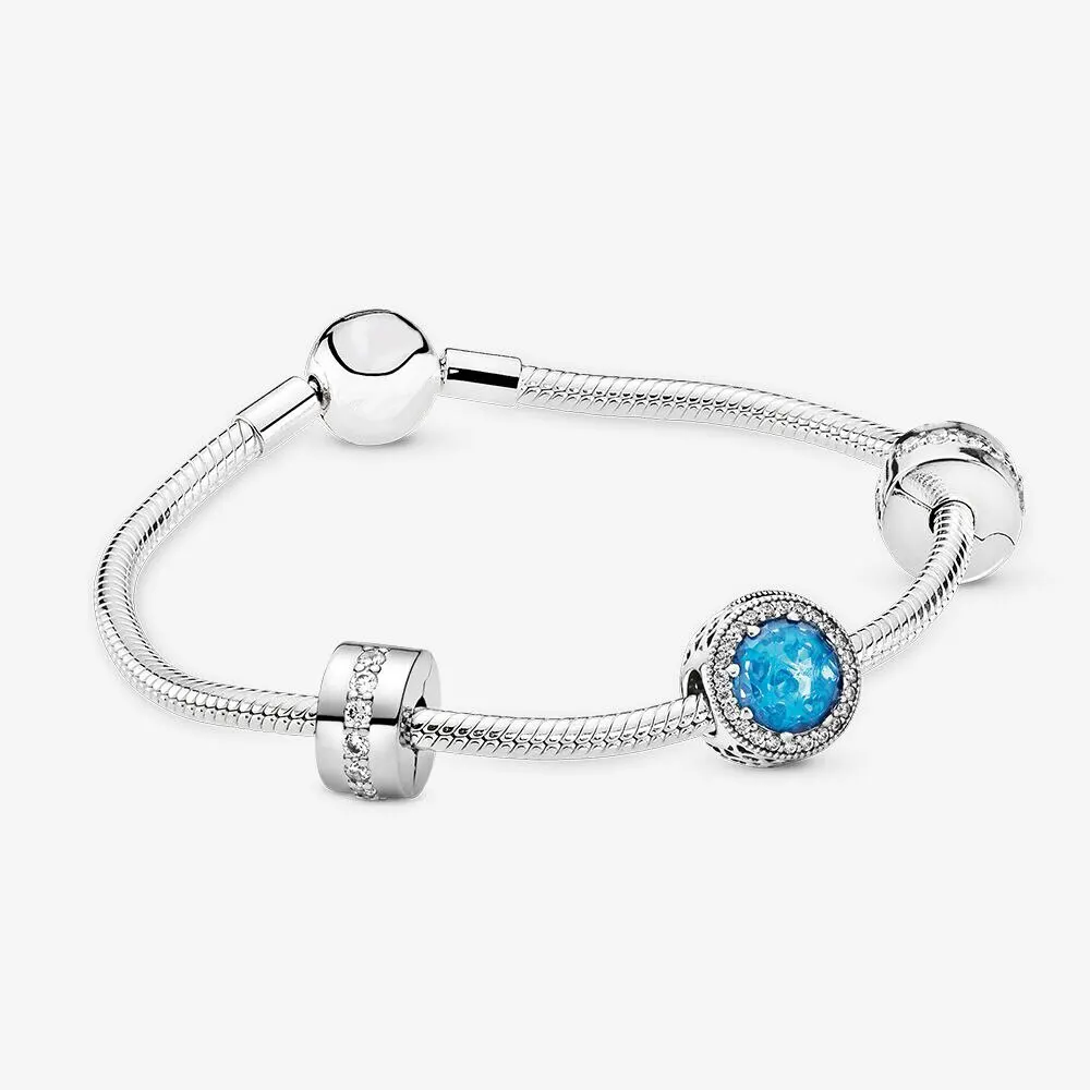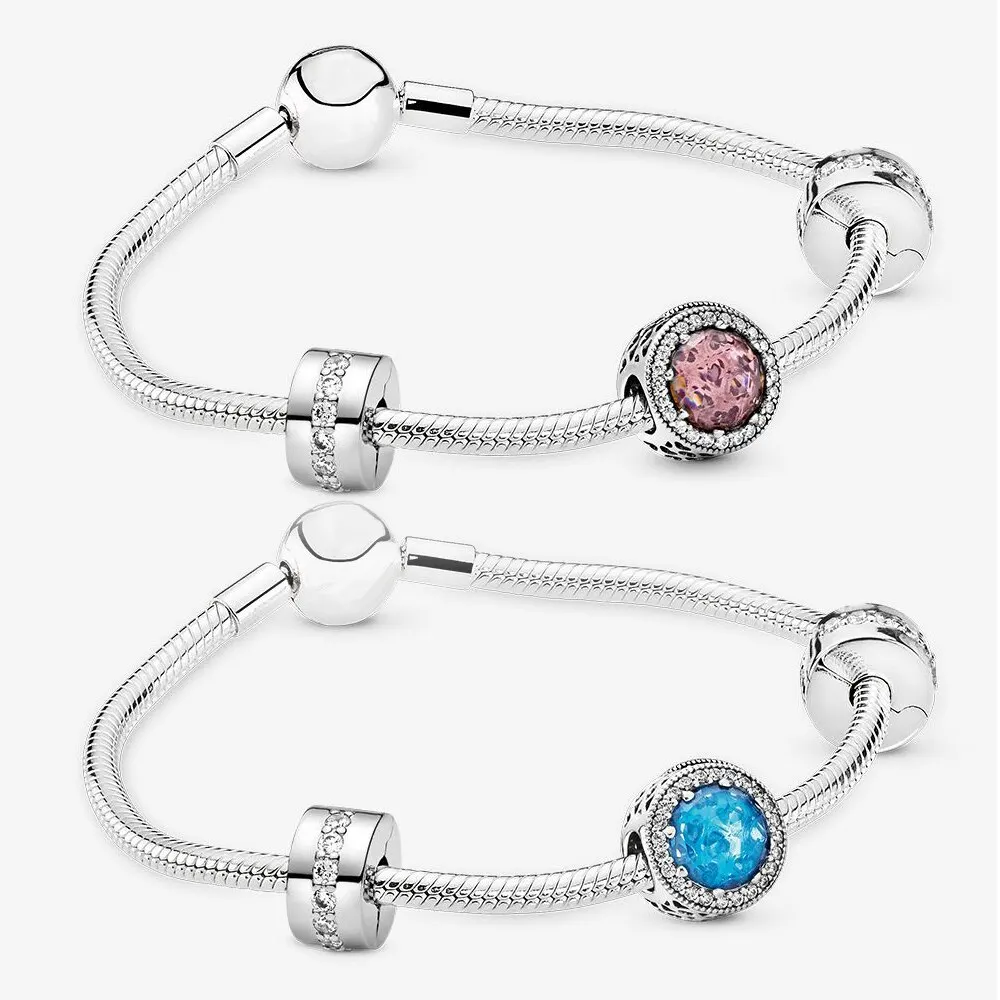 Kakang модная Высококачественная обувь 100% S925 стерлингового серебра туфли розового цвета, туфли небесно-сапфир Набор браслетов, оригинал, сделай сам, ювелирное изделие подходит для мужчин и женщин