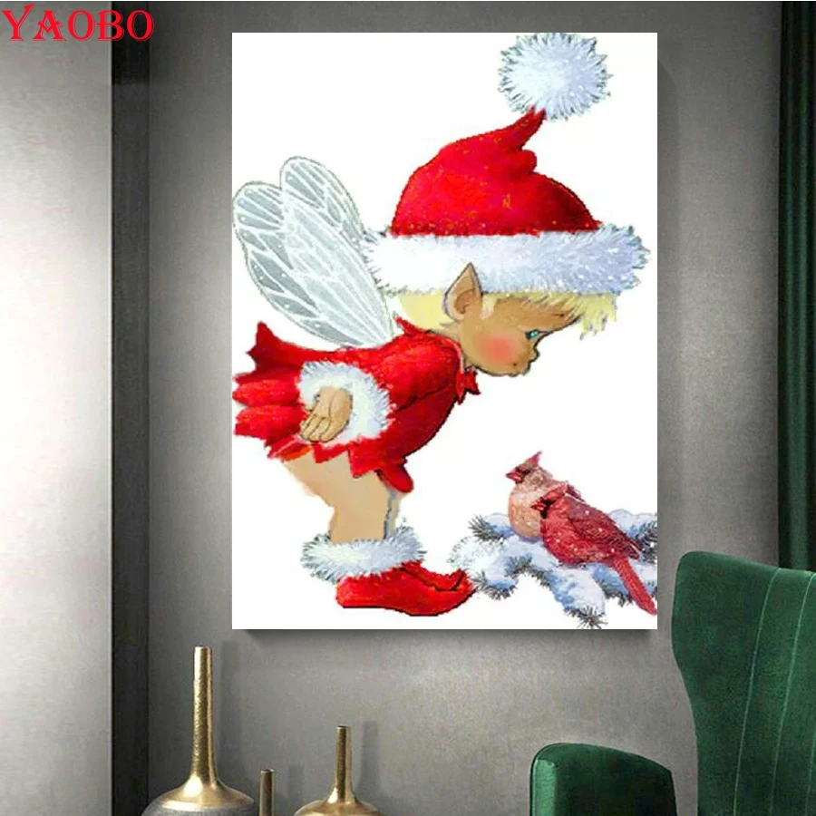 5D DIY бриллиантовый рисунок Рождество Фея девушка и птица и крест набор стежков мозаика Алмазная вышивка полный квадратный дрель домашний декор