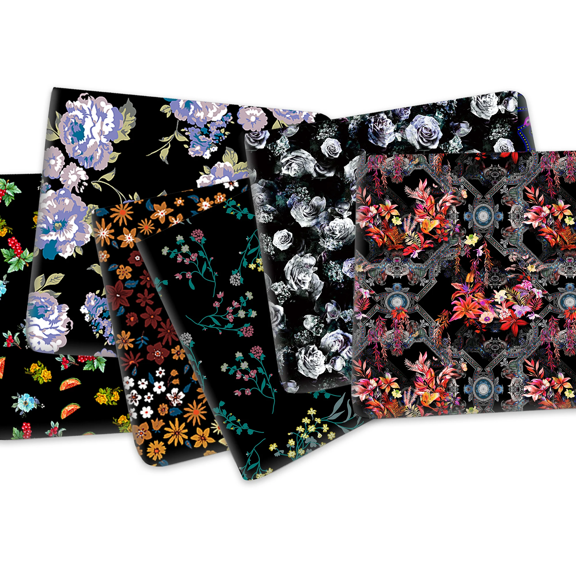 50*145 см, черная цветочная ткань из полиэстера и хлопка, Лоскутная Ткань, платье, марионетка, искусственная ткань, кукла, 1Yc17774
