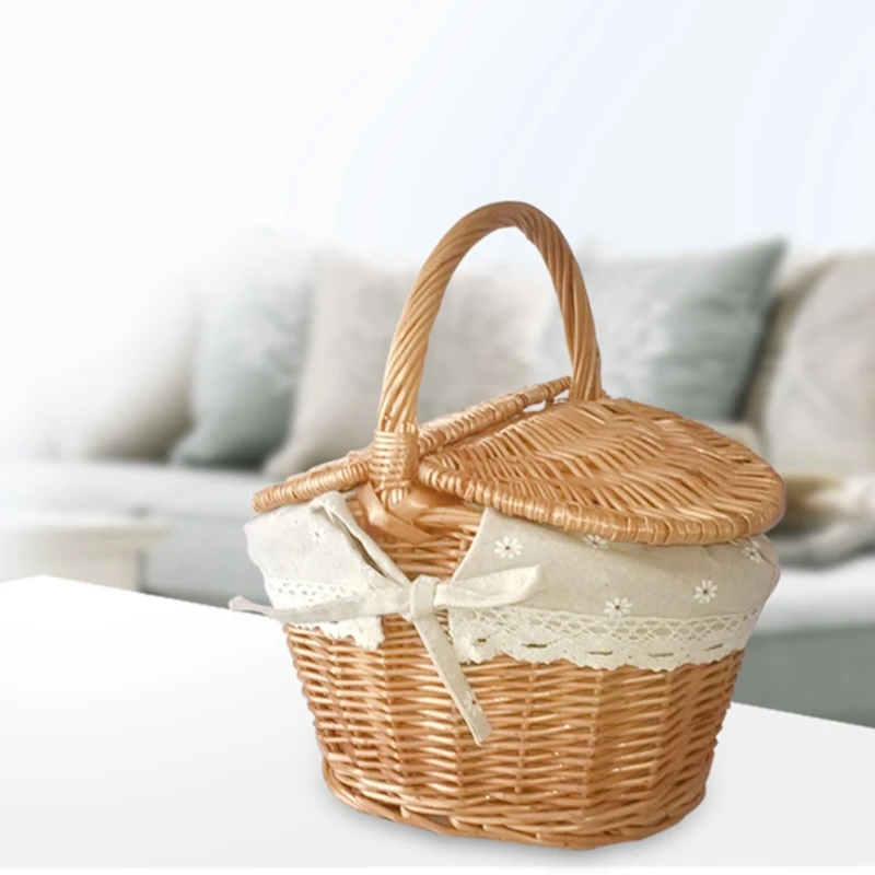 Плетеная корзина тканая Корзина для пикника с крышкой, для кемпинга...
