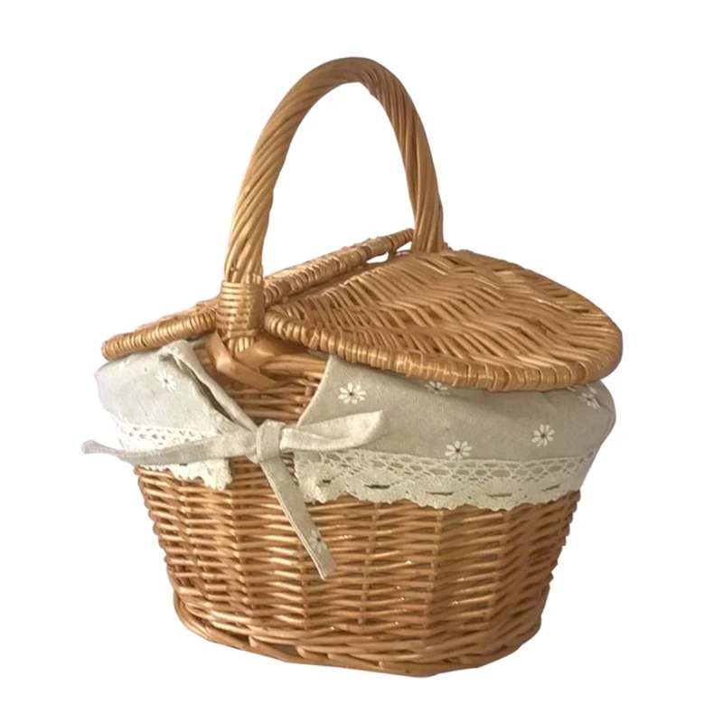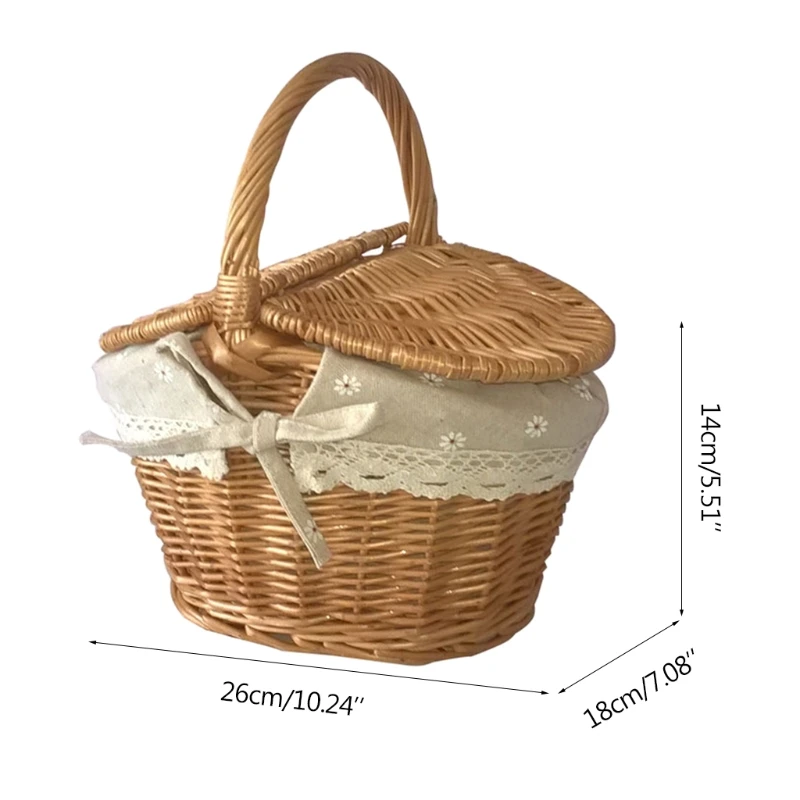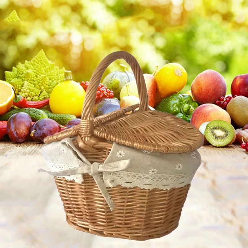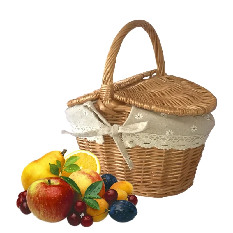 Плетеная корзина ручной работы, плетеные запасами ивовых деревьев тканая Корзина для пикника с ручкой двойной крышкой Еда для хранения фруктов корзина