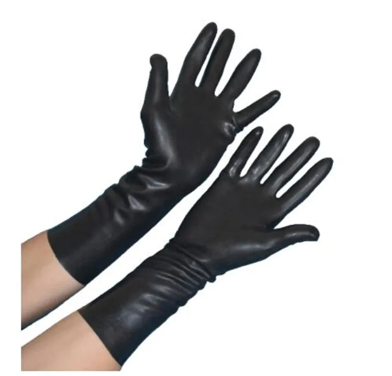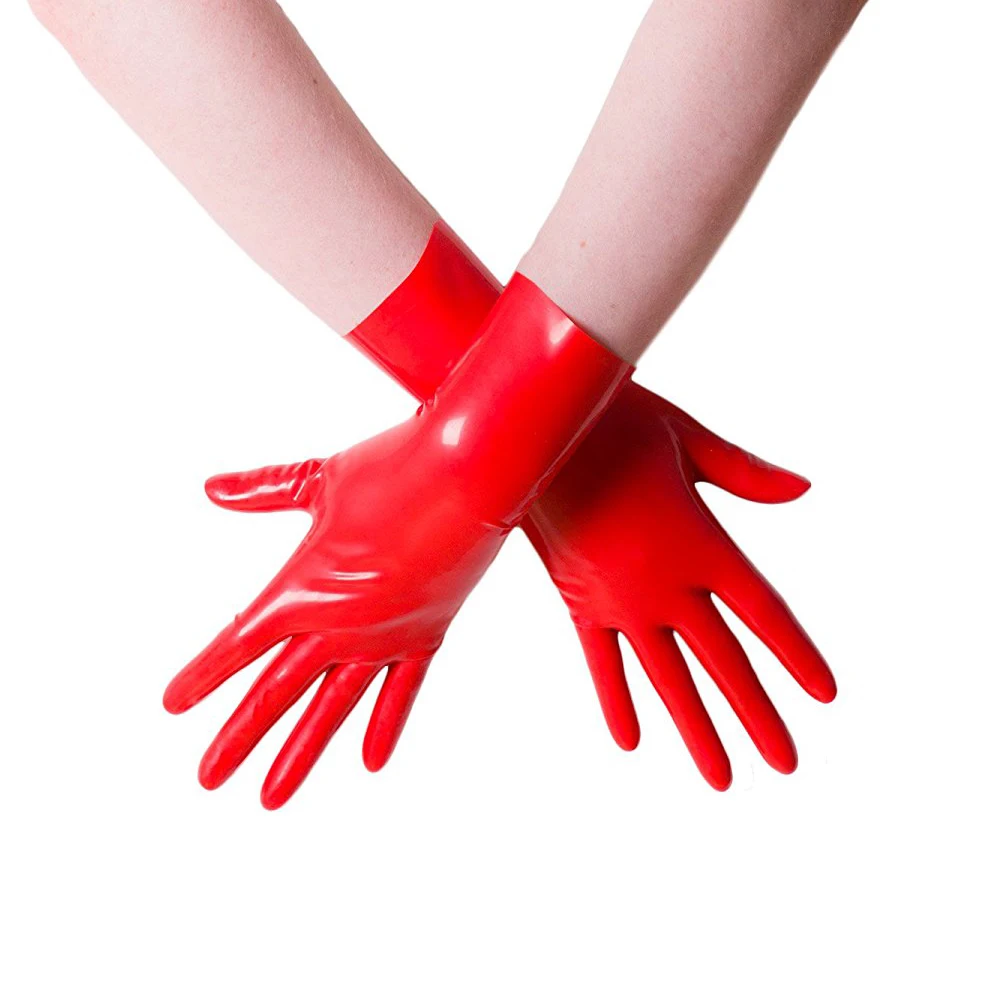 Сексуальные черные латексные короткие перчатки длина запястья для ж...