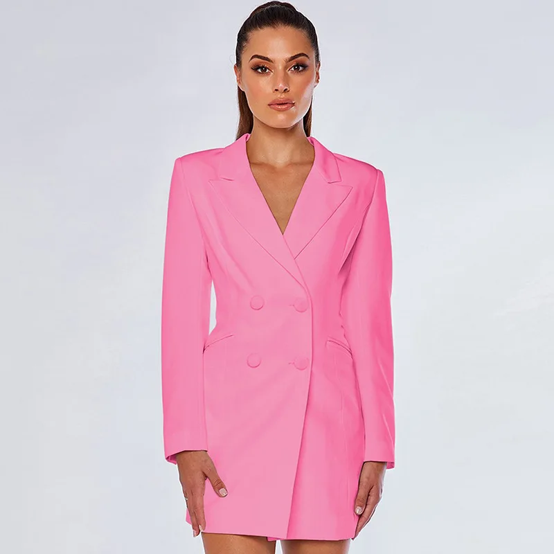Пикантный Элегантный женский костюм с настоящей картинкой, двубортный приталенный Блейзер, летняя повседневная Уличная одежда для молодых девушек