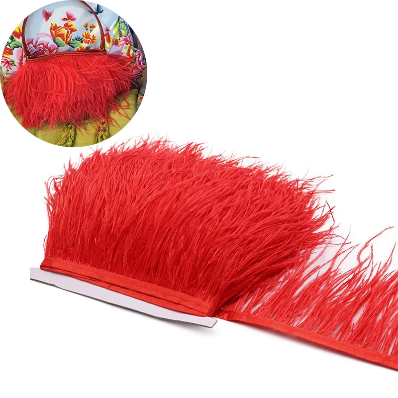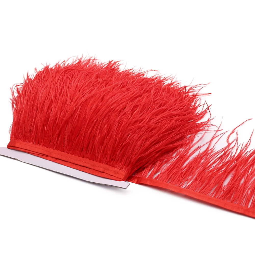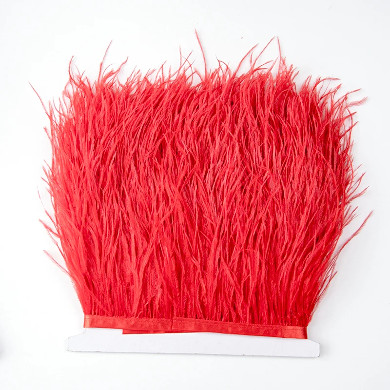 Высококачественные красные страусиные перья, отделка, кружево с бахромой 4-6 дюймов, натуральная зеркальная отделка, украшение для платья, швейная ткань