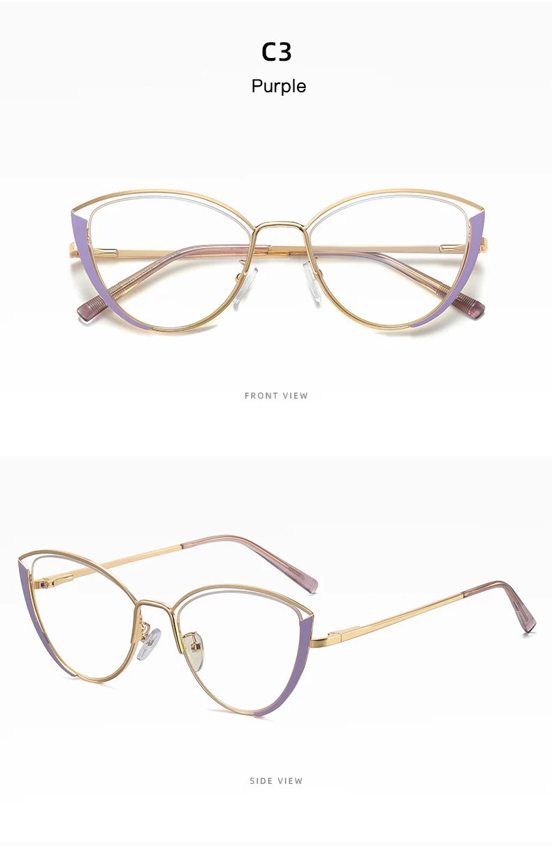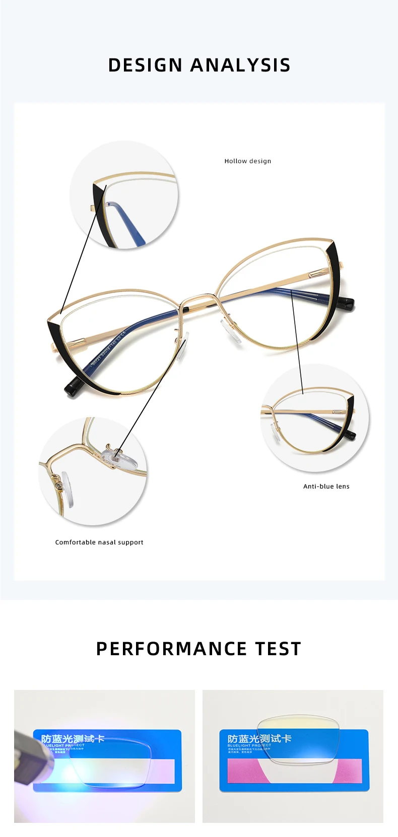Оправа для очков Женская металлическая, кошачий глаз, с защитой от сисветильник света, O-Q, 95721