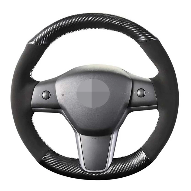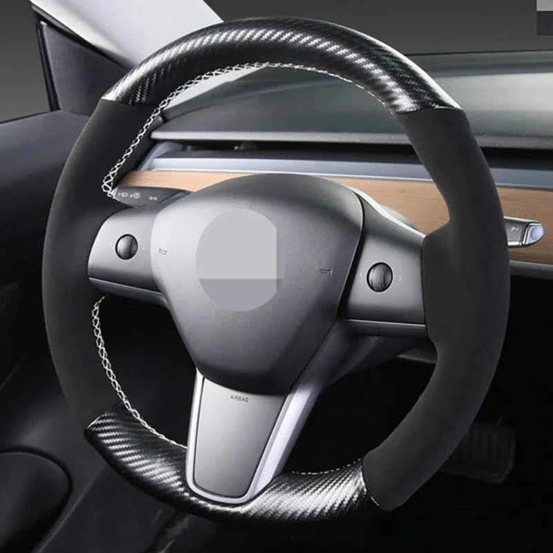 Чехол рулевого колеса автомобиля мягкая рука сшитый Черный углеродного волокна Черная замша чехол рулевого колеса автомобиля s для Tesla модель 3 2017-2020
