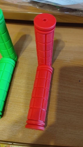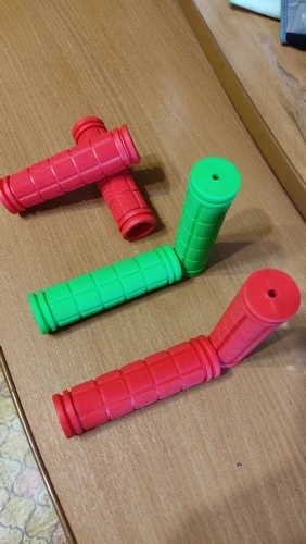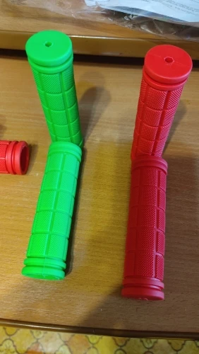 Грипсы под детскую ладошку, длина чуть более 10 см. Для мужской руки коротковаты. Тонкие, но вполне цепкие. Вообщем, сколько стоят - так и выглядят.