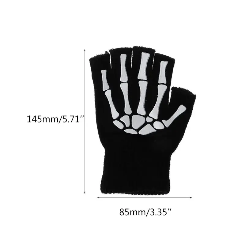 Перчатки на полпальца для взрослых, теплые вязаные, с принтом скеле...