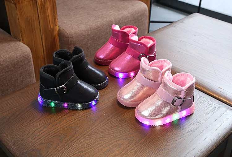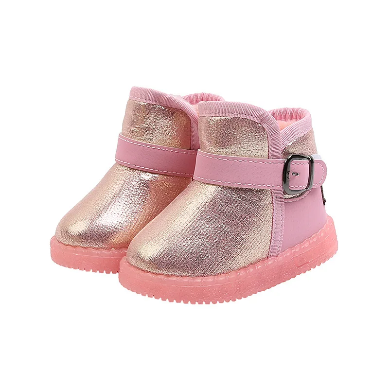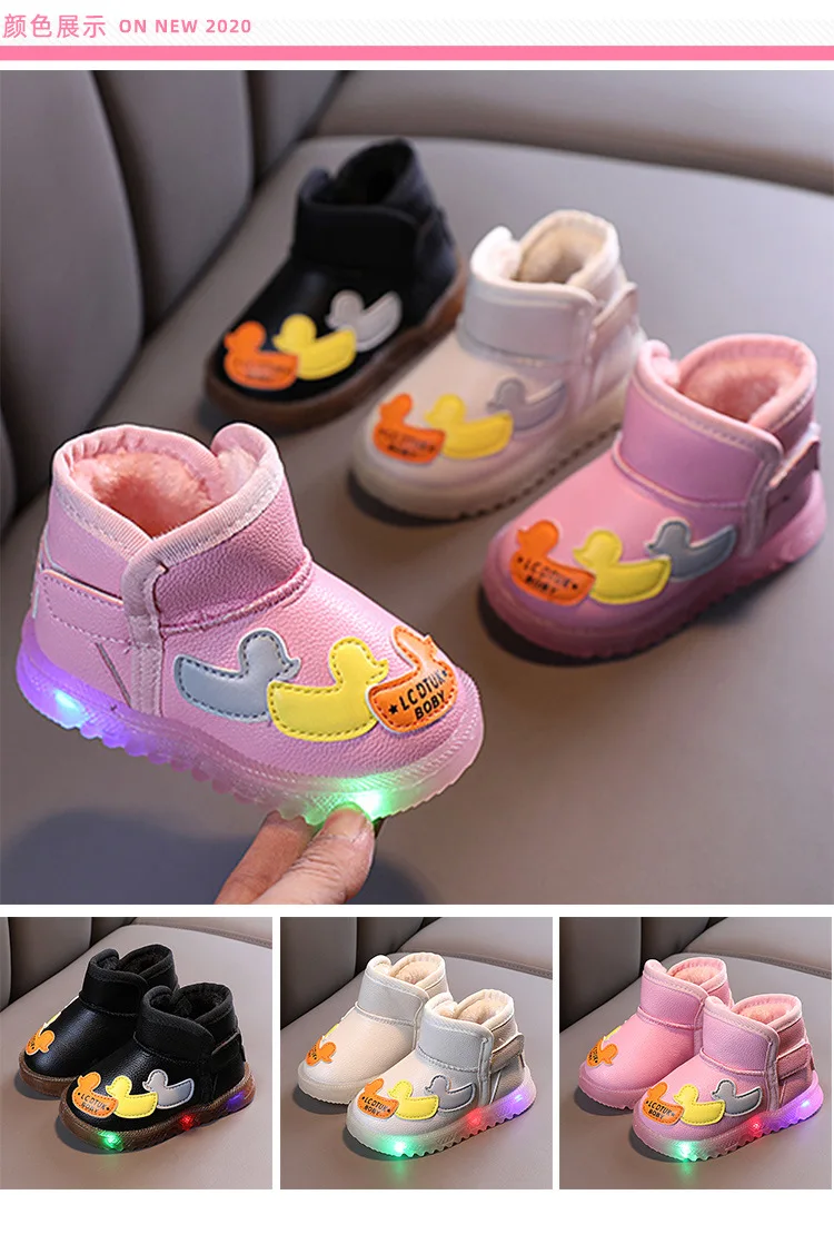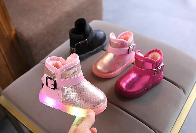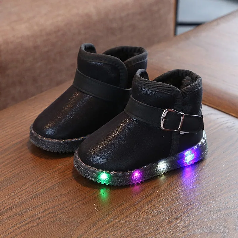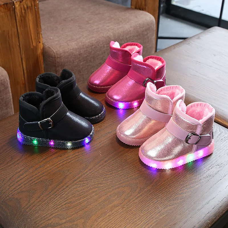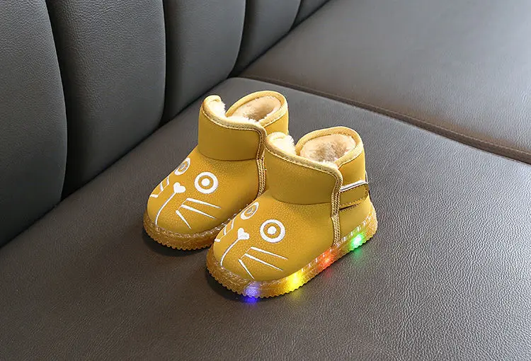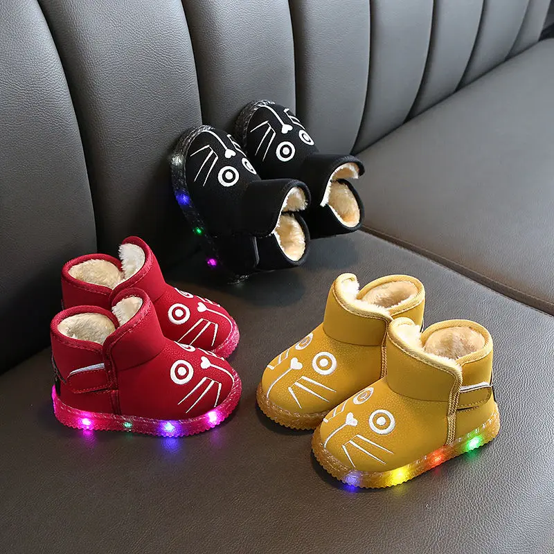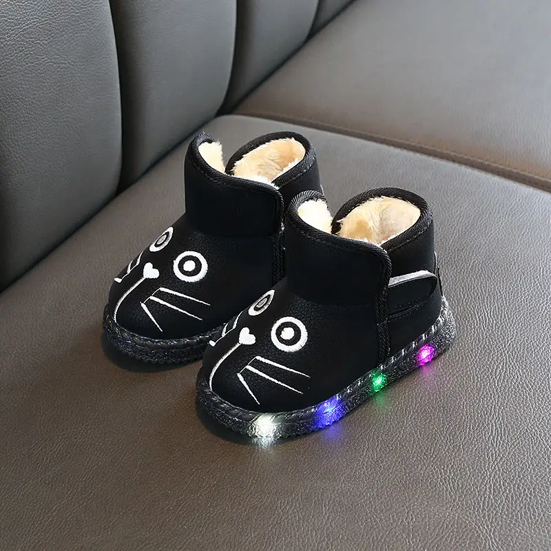 Ботинки детские с подсветкой, бархатные Нескользящие, хлопковые, с блестящими пайетками, симпатичные теплые ботинки с котятами