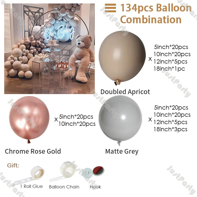 Гирлянда из воздушных шаров, 134 шт., украшение для детского душа, дня рождения, свадьбы, двойные, абрикос, серый, хром, розовое золото, шары