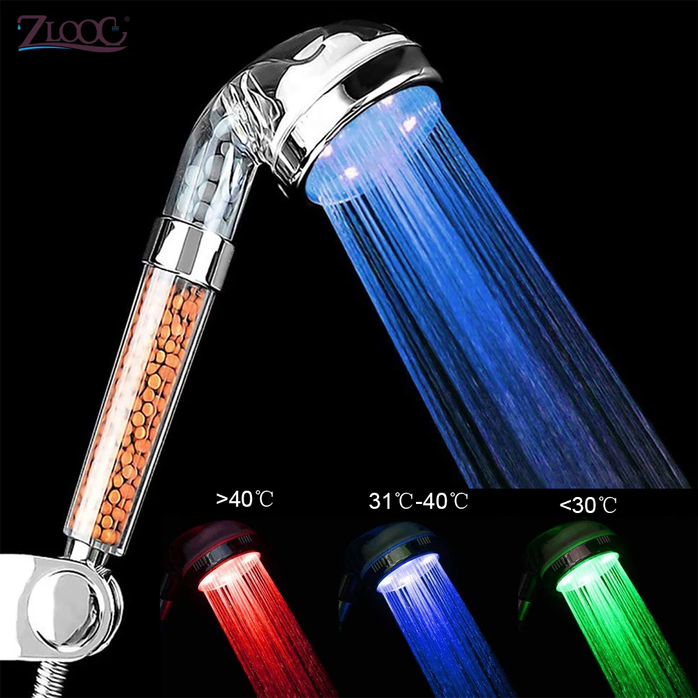 Душевая светодиодный ка Zloog, светодиодная, меняющая цвет, контроль температуры, ручной душ высокого давления для спа-Анионный фильтр, 37