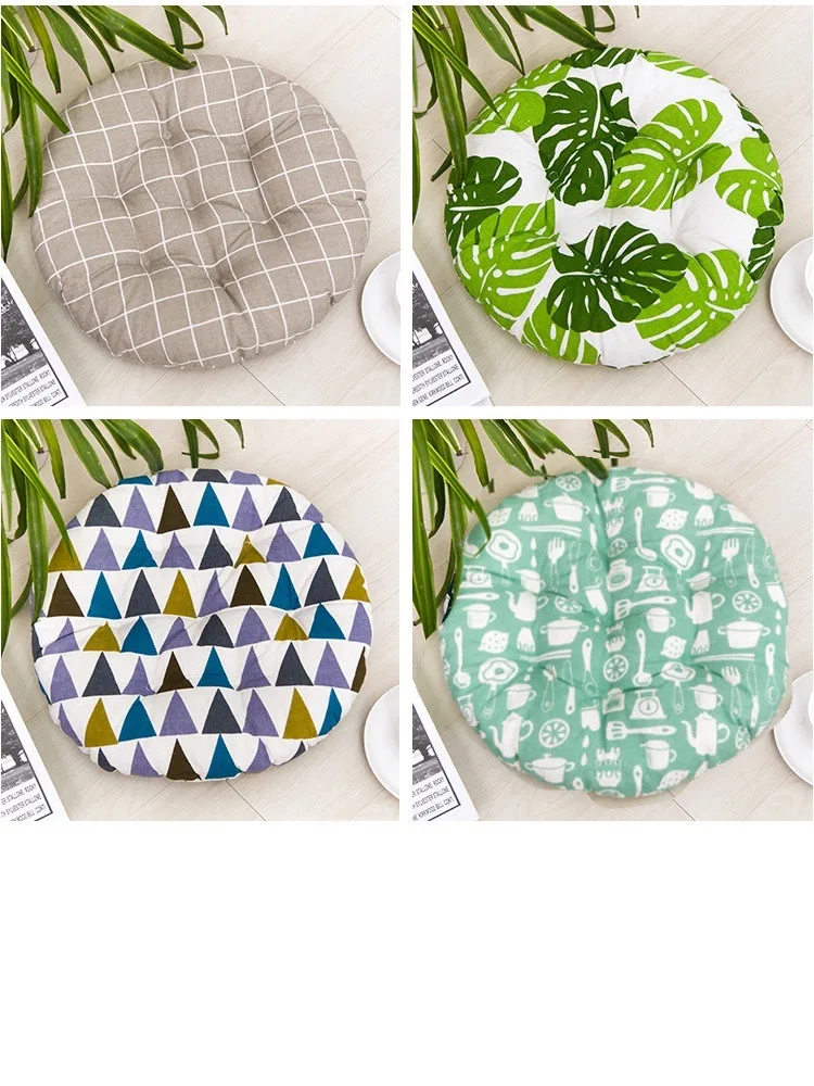 Круглая подушка, утолщенная подушка для офисного стула, подушка для сиденья из хлопка и льна с принтом, домашний декор, подушка для дивана, дышащий мягкий табурет, татами, напольный коврик