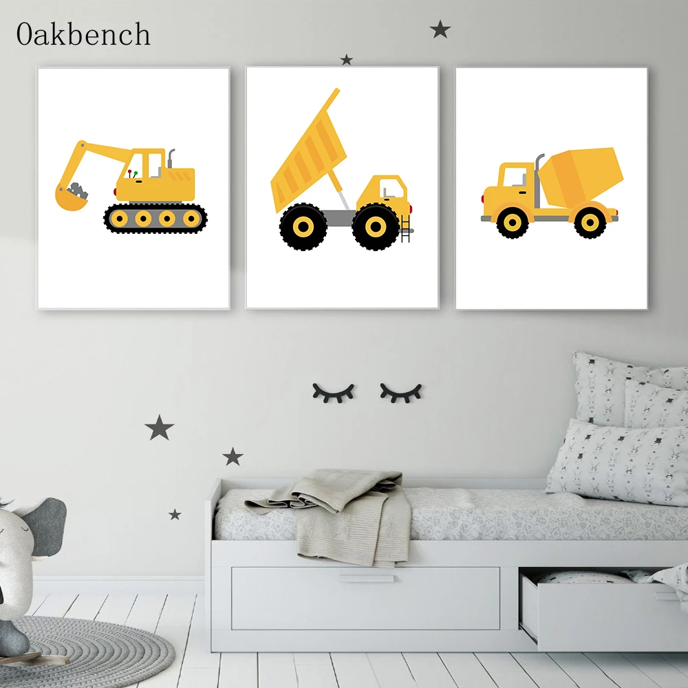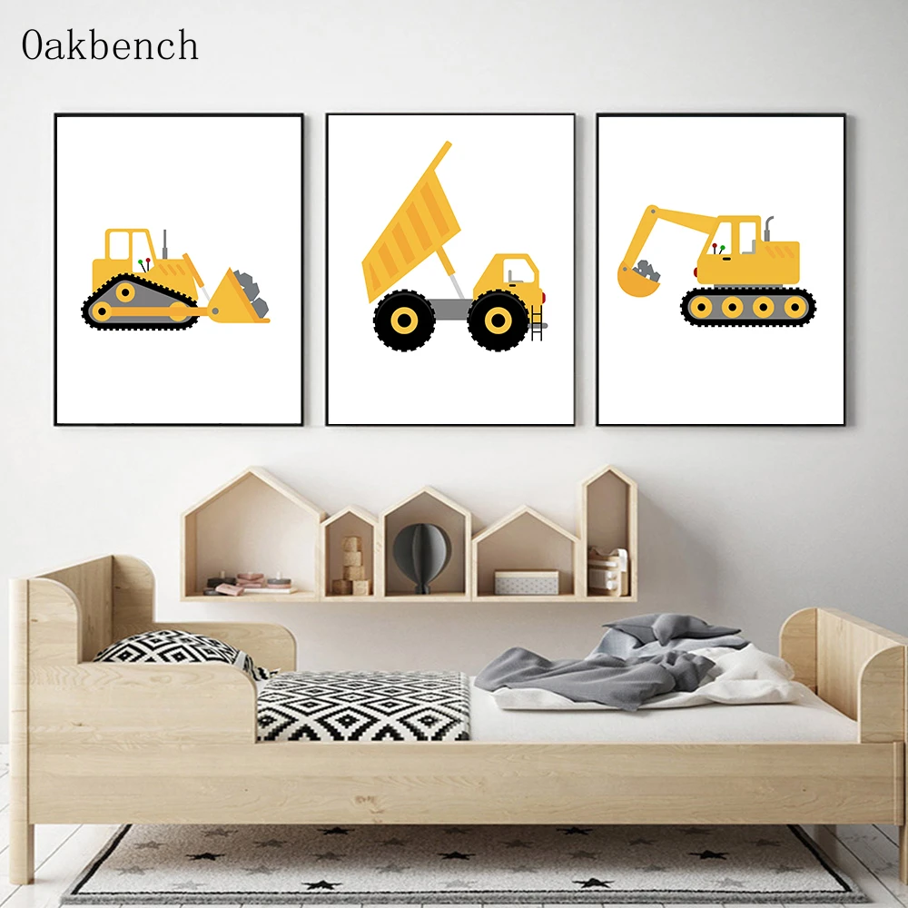 Абстрактная живопись бульдозер экскаватор Печать на холсте постеры для мальчиков минималистичный плакат современные настенные картины для мальчика Декор детской комнаты