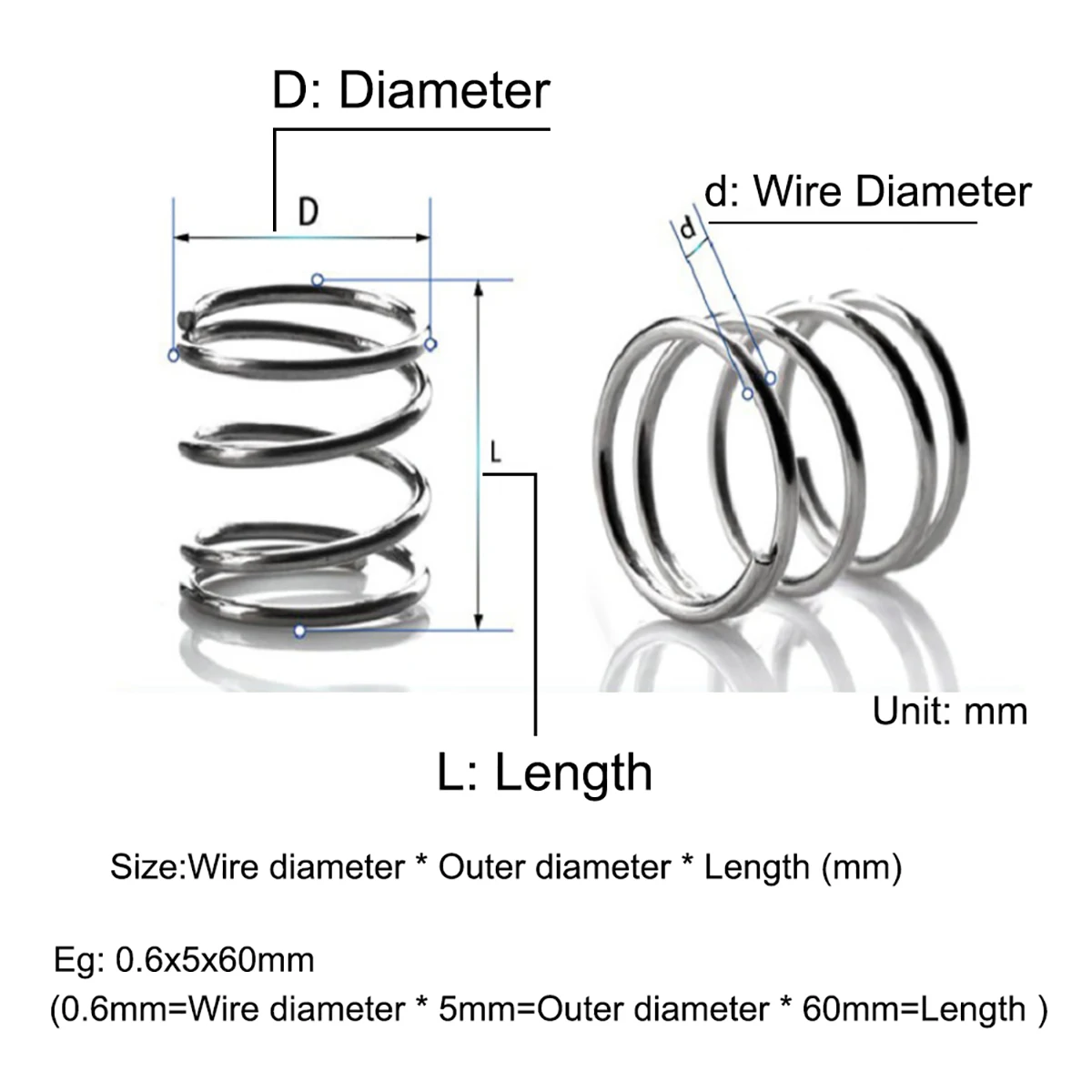 1 мм провод Dia 304 Нержавеющаясталь нажимная пружина сжатая пружин...
