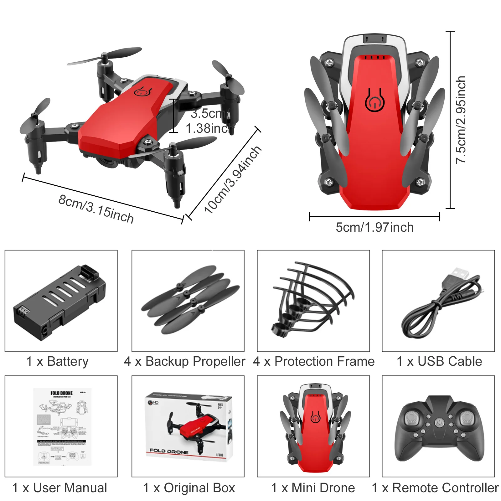 Satkago мини Дрон HD широкий высокий уровень Профессиональный радиоуправляемый вертолет один ключ возврат FPV дроны складной Квадрокоптер детские игрушкиПодробности:В 4-осевая гироскоп можете обеспечить лучшую устойчивость для мини-Дрон, позволяет легко летать в соответствии с вашими контроля. (Примечание: Этот мини-Дрон без функции аэрофотосъемки.)Функция снятия и посадки одним касанием, функция возврата одной кнопкой, очень простая операционная система, с пультом дистанционного управления, даже дети могут легко управлять им.Безголовый режим, поэтому нет необходимости различать направление дрона перед полетом, и полет будет более плавным и захватывающим.Скорость полета регулируется, 3 скорости для опции: 3 м/с, 6 м/с, 9 м/с, вы можете управлять скоростью полета, чтобы чувствовать себя разным полетом.Игрушка-Дрон имеет небольшой размер и складывается, даже может храниться в кармане, удобна для переноски в любом месте. Модные подарки для детей, приносят им бесконечное удовольствие.Спецификация:Материал:ПластикРазверните Размер:10x8x3,5 см/3,94x3,15x1,38 дюймовРазмер в складку:7,5x5x3,5 см/2,95x1,97x1,38 дюймовЕмкость литиевой батареи:450 мАчМетод зарядки:Usb-кабельВремя зарядки:60 минВремя полета:8 минРасстояние дистанционного управления:80 - 100 мАккумулятор пульта дистанционного управления:3 батареи АА (не входят в комплект)Возраст подходит:14 +Доступные цвета:Черный, белый, красныйПожалуйста, сообщите нам желаемый цвет при покупке, иначе мы отправим его случайным образом.Примечание:1. Пожалуйста, заряжайте вовремя. Если дрон не летит, он указывает на зарядку.2. Не подходит для детей в возрасте до 14 лет, из-за того, что этот продукт содержит мелкие детали.3. Не прикасайтесь, когда пропеллер вращается на высокой скорости.4. Если аккумулятор нагревается при зарядке или разрядке, пожалуйста, не трогайте.5. Если вы не используете продукт, отключите вилку питания.6. При хранении, пожалуйста, сохраняйте полную зарядку.7. Из-за ручного измерения возможны небольшие отклонения.Посылка:1 игрушечный мини-Дрон1 х пульт дистанционного управленияАккумулятор-1 шт.1 х USB кабель4 x запасной пропеллер4 x защитная рамка1 x Руководство пользователя