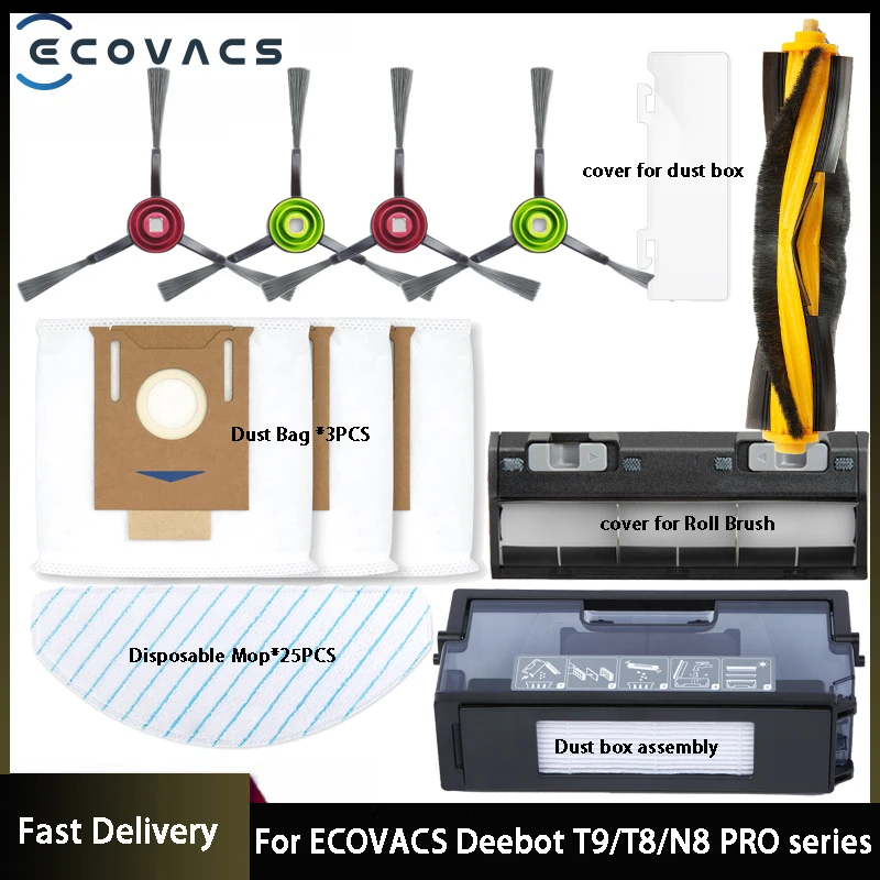 Роликовая Щетка Для ECOVACS Deebot T9T8N8T5N5 Series, боковая щетка, одноразовая швабра, фильтры НЕРА, пылесборник