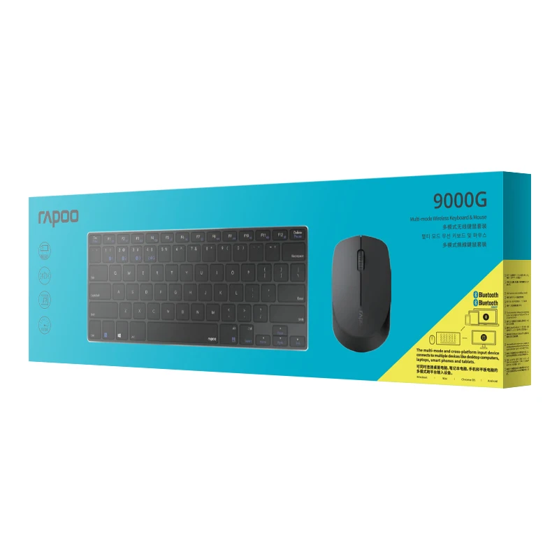 Комбинация Rapoo 9000G, многорежимная Бесшумная беспроводная клавиатура, мышь, BT3.04,0 RF 2,4G, переключение между подключением 3 устройств