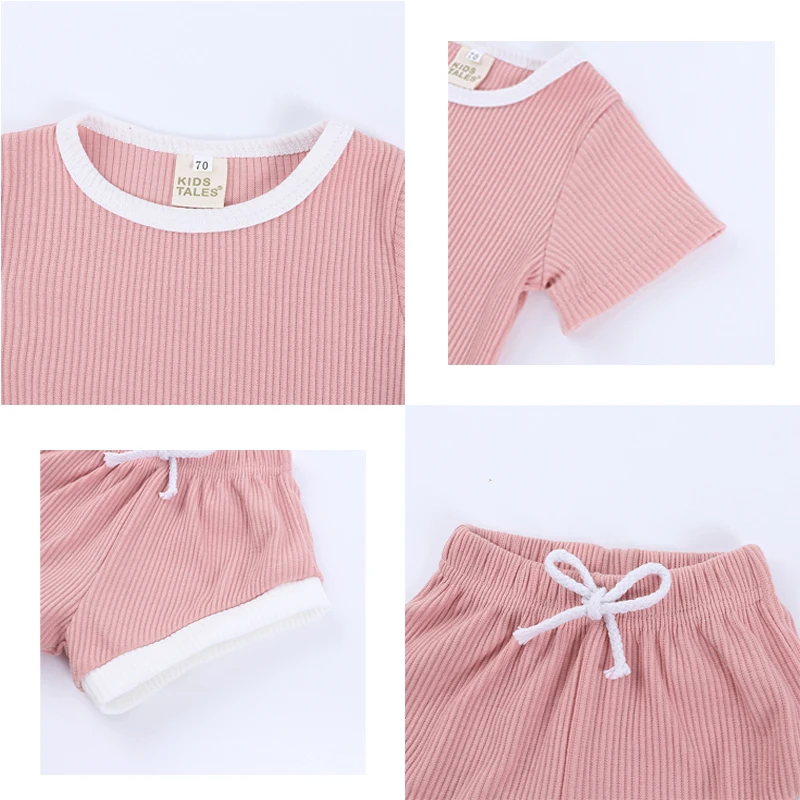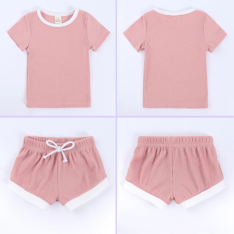 Одежда для новорожденных девочек и мальчиков комплект одежды для маленьких девочек, хлопковая футболка + короткие штаны летняя одежда для маленьких девочек спортивные комплекты с шортами