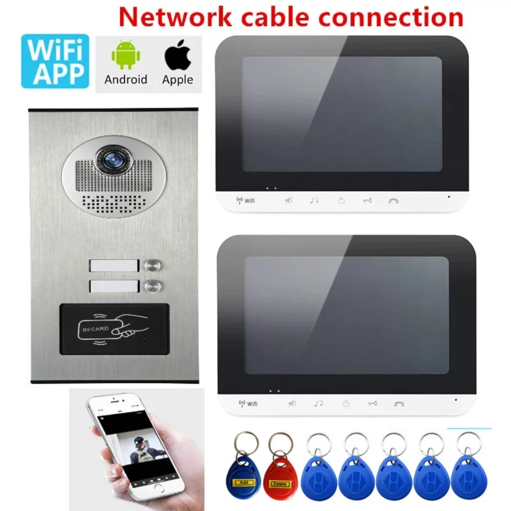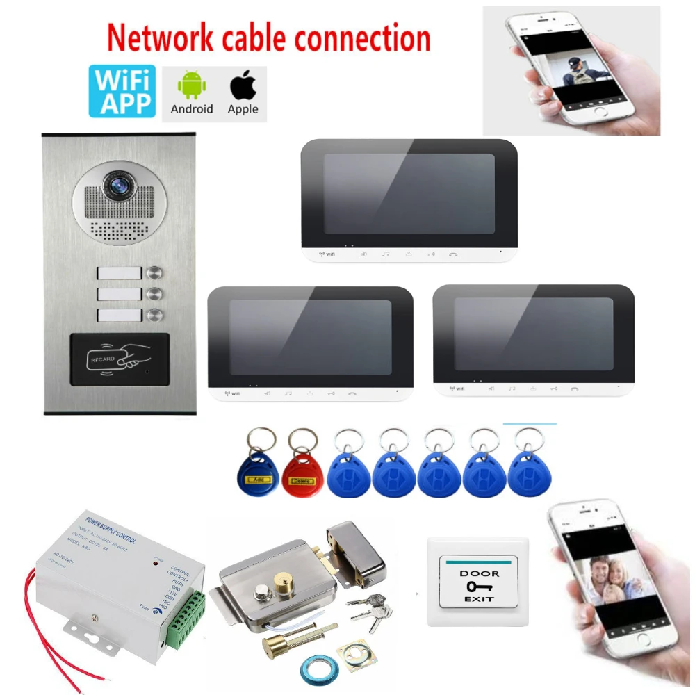 7 "проводной WI-FI видео-телефон двери внутренной связи Системы + RFID открытый доступ Камера Электрический замок для 2 3 квартиры