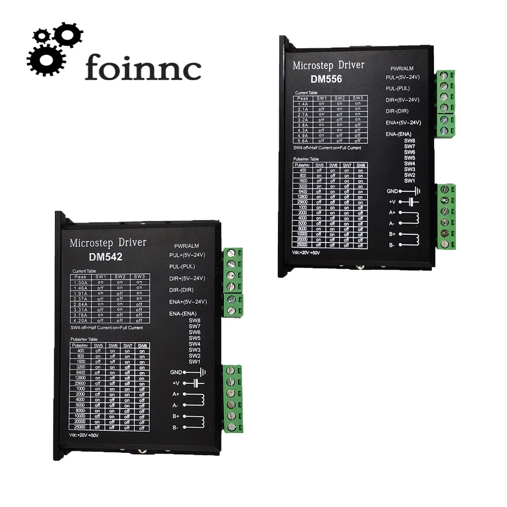 DM542 или DM556 является универсальным полностью цифровым шаговым диском на основе DSP с усовершенствованным алгоритмом управления. DM542 или DM556-это новое поколение управления цифровым шаговым двигателем. Он приносит уникальный уровень гладкости системы, обеспечивая оптимальный крутящий момент и устраняет нестабильность среднего диапазона. Технология автоматической настройки двигателя и параметров обеспечивает оптимальные отклики с различными двигателями и простоту в использовании. Приводные двигатели могут работать с гораздо меньшим шумом, более низким нагревом, плавным движением, чем большинство приводов на рынках. Его уникальные особенности делают DM542 или DM556 идеальным решением для приложений, которые требуют низкой скорости гладкости.