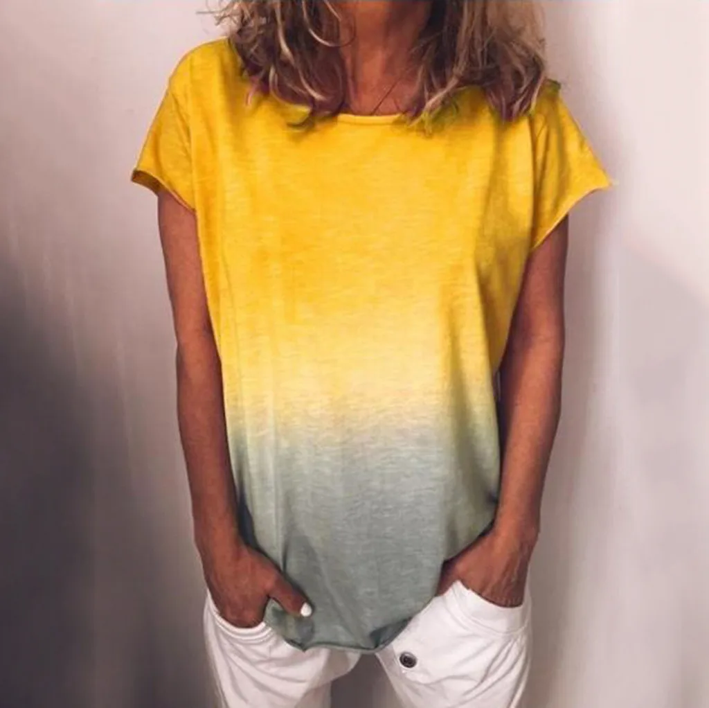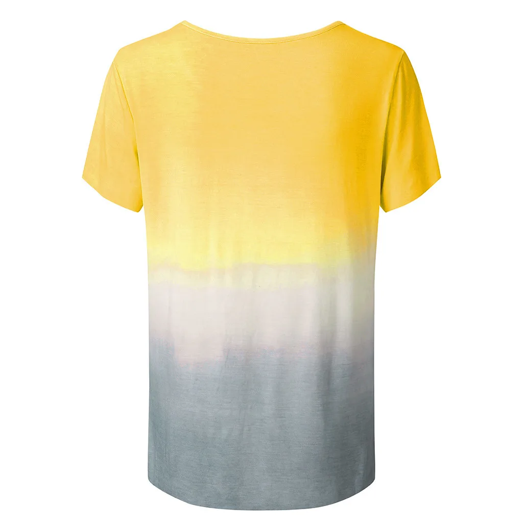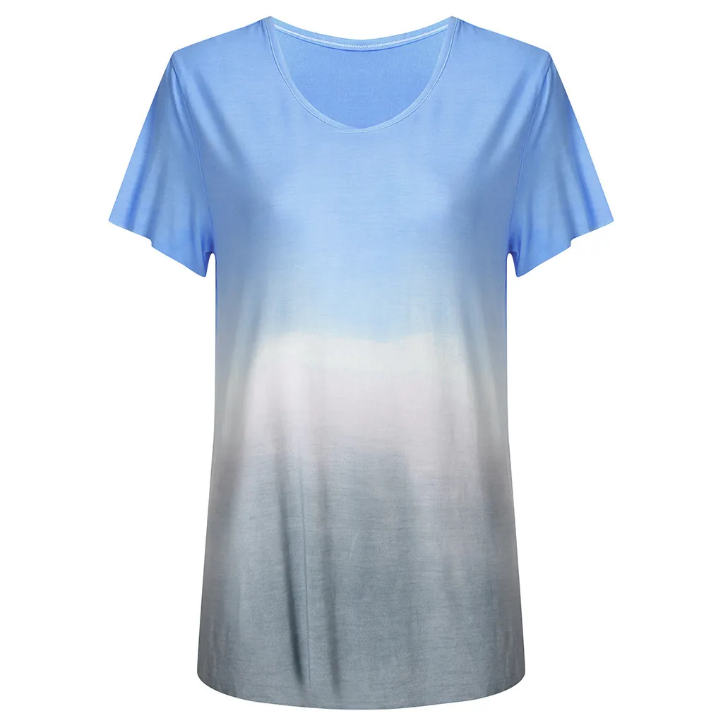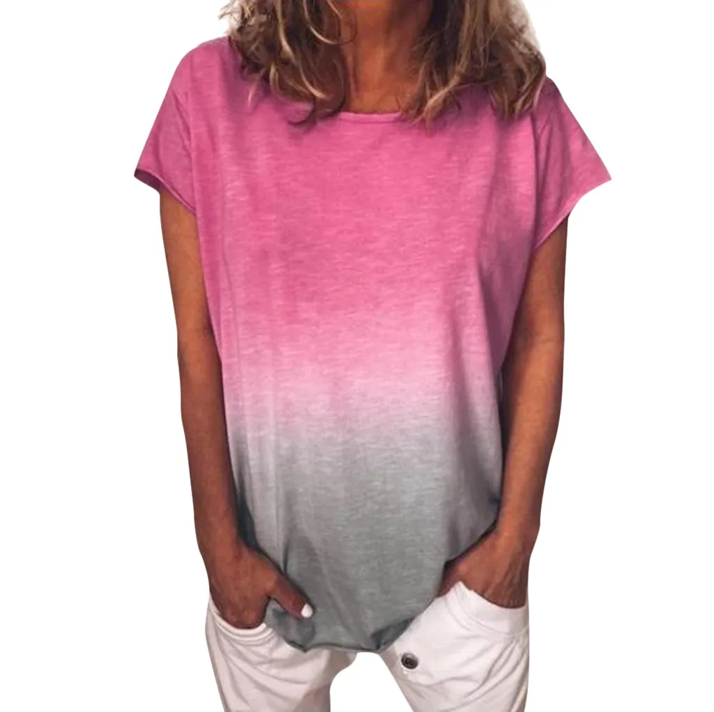 Женская Повседневная футболка с коротким рукавом градиентного цвета, туника, блузка, топы