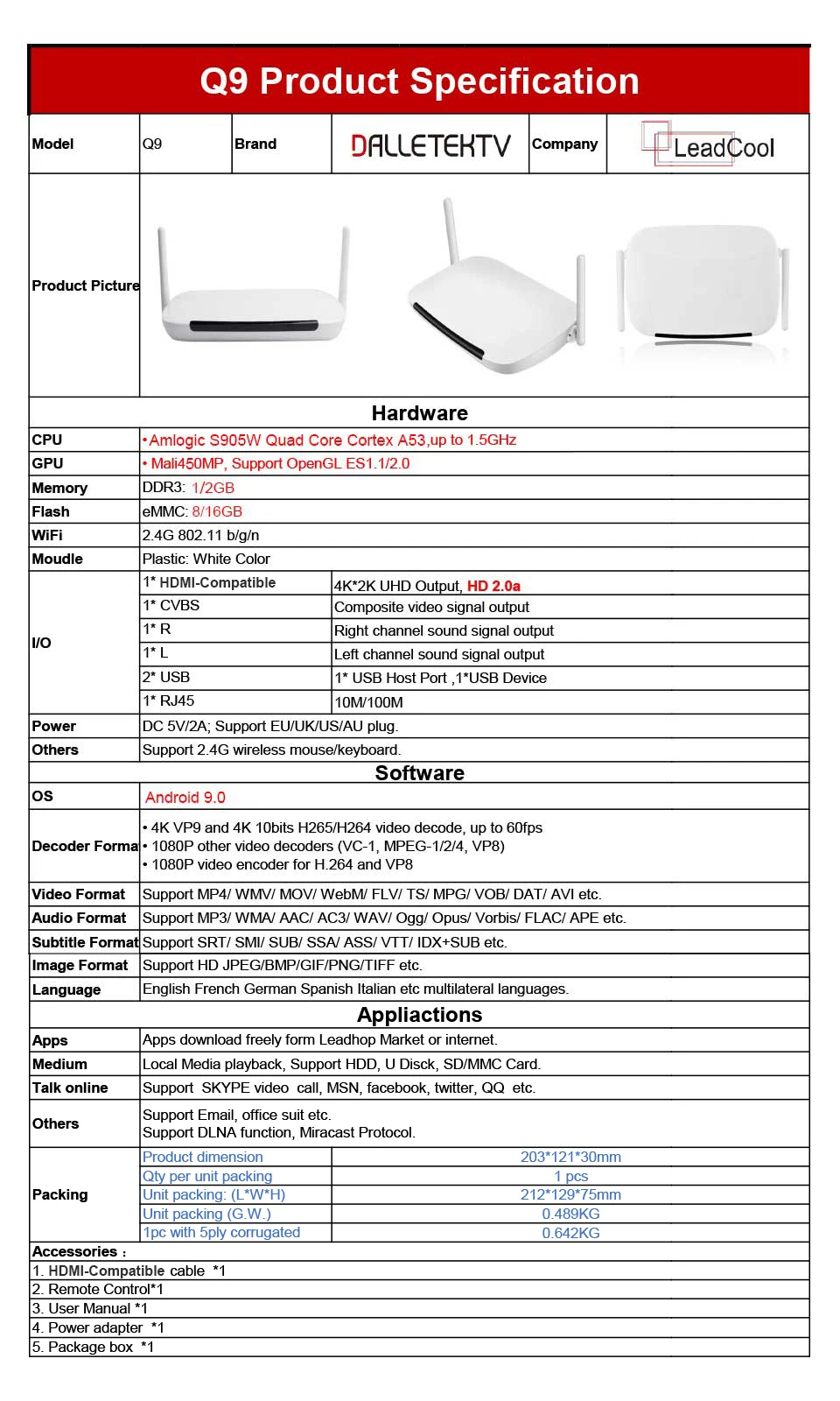 Номер моделиLeadcool Q9 Media Player