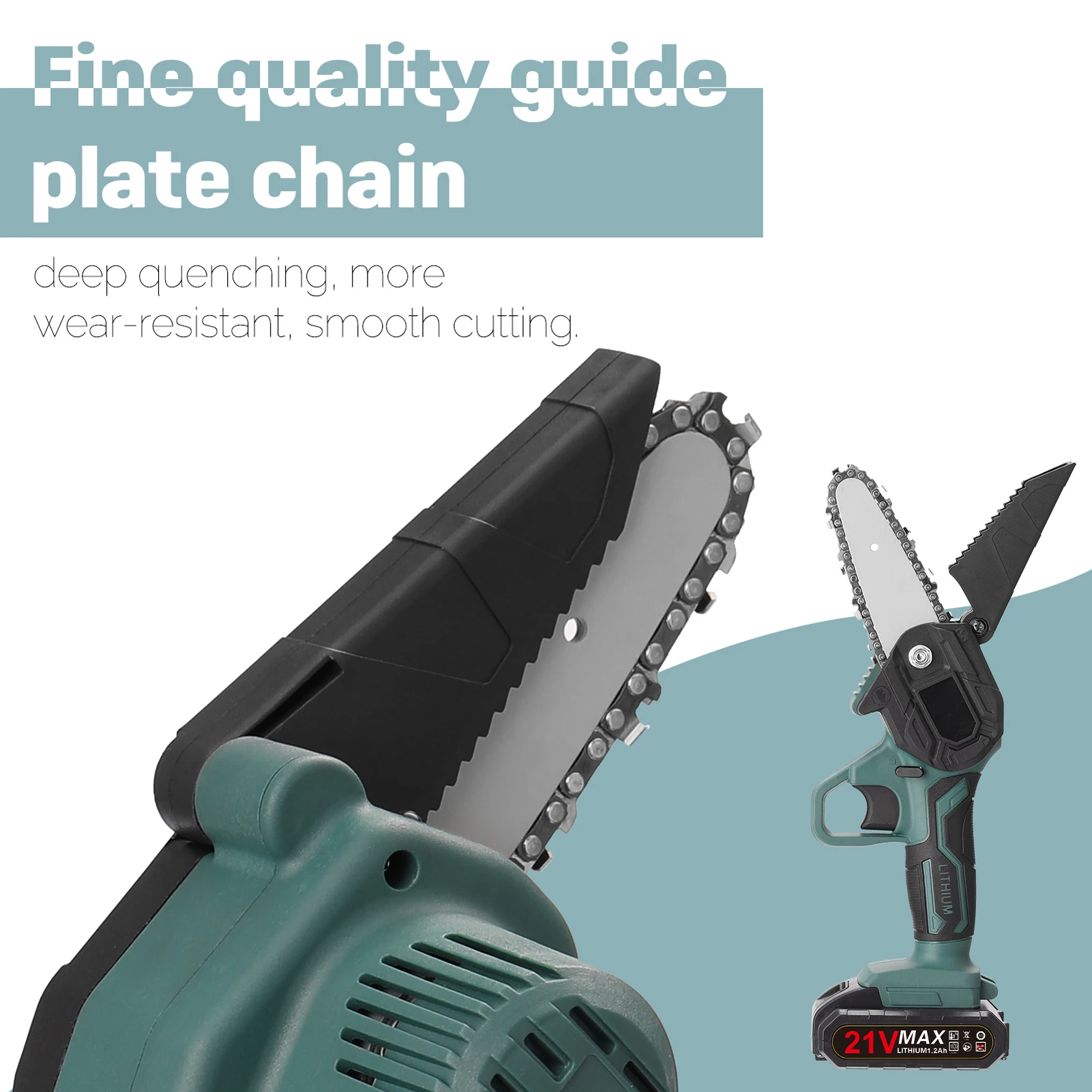 По сравнению с другими обрезными пилами, эта бензопила меньше, ее удобно держать и использовать. Этот продукт изготовлен из тонкого практичного и простого в эксплуатации материала, имеет широкое применение и имеет длительный срок службы, поэтому вам не нужно часто их менять. Этот продукт идеально подходит для обрезки, разделения, дров, резки дерева и так далее, попробуйте, он не подведет.Особенности:По сравнению с другими типами бензопилы, эта бензопила меньше и светильник, поэтому вы можете удерживать и использовать ее более легко, что на используется для больше людей.Эргономичный дизайн ручки, одной рукой, долго держать не устанут руки.Беспроводной дизайн, легкий и портативный, удобный для переноски и пиления древесины.Пила была глубокой закалкой при высоких температурах, с заточением пильных Зубцов, более износостойкой, гладкой резкой.Высокая эффективность работы, высокая точность позиционирования, низкий уровень шума, что дает вам лучший опыт использования.Высокая скорость резки, практичность и низкое энергопотребление, высокая стабильность и высокая производительность.Характеристики:Материал: АБС-пластик + металлОсновной цвет: зеленыйПитание: 2 * литиевых аккумулятора, 21 в, 2000 мАч (в комплекте)Размер хоста после сборки: 330*110*100 мм/13,0*4,3 * 3.9inРазмер направляющей пластины: 129*34*3 мм/5,1*1,3 * 0.1inВес изделия: 1061 г/фунтаПосылка: 300*120*110 мм/11,8*4,7 * 4.3inВес посылка: 1584 г/фунтаУпаковочный лист:1 * хост1 * цепь1 отвертка1 * рукав1 * направляющая пластина1 * Адаптер питания (Великобритания, ЕС, Австралия, США на выбор)Аккумулятор 2*21 в1 * перегородка
