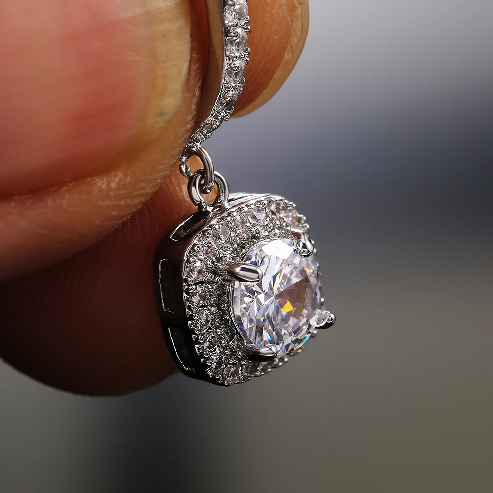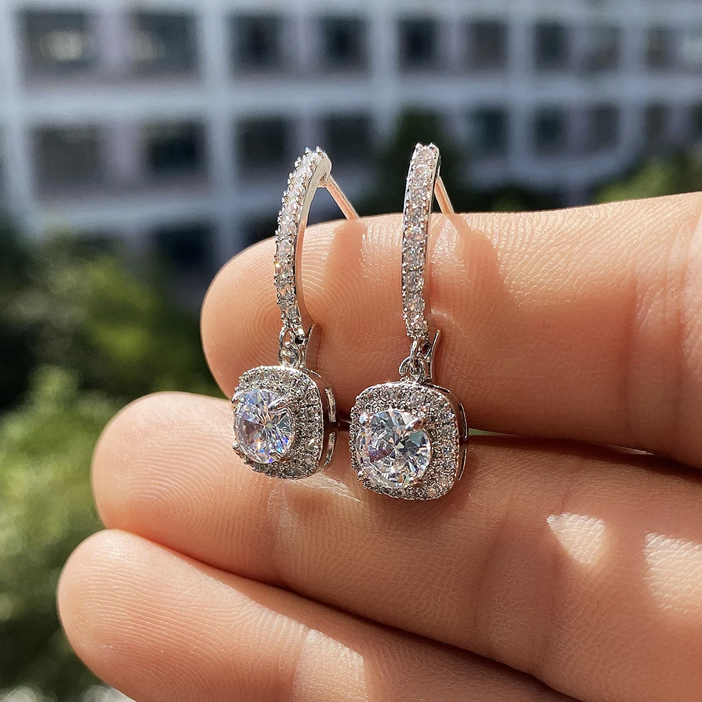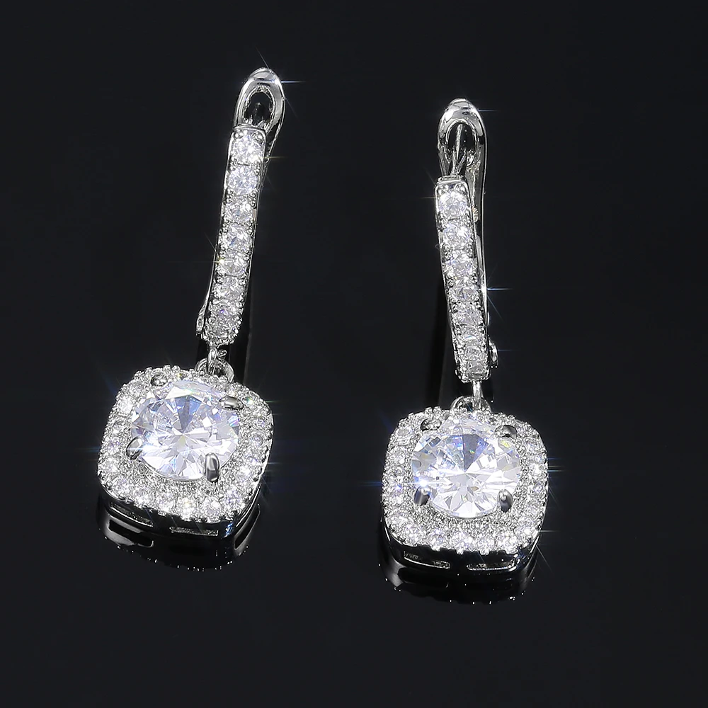 Серьги-подвески Huitan женские, Ювелирное Украшение серебряного цвета, блестящий хрусталь, циркон, камень, Хороший Подарок на годовщину