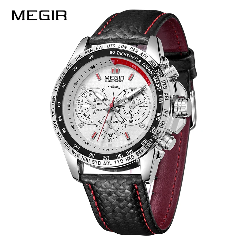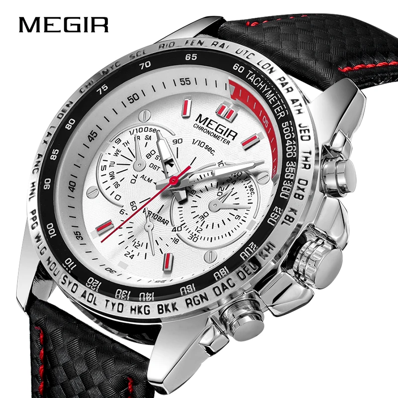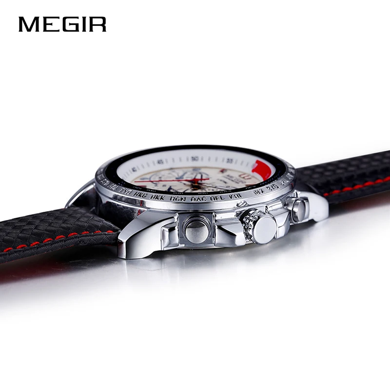 Часы MEGIR Мужские кварцевые, брендовые Роскошные модные светящиеся водонепроницаемые наручные, с календарем, белые