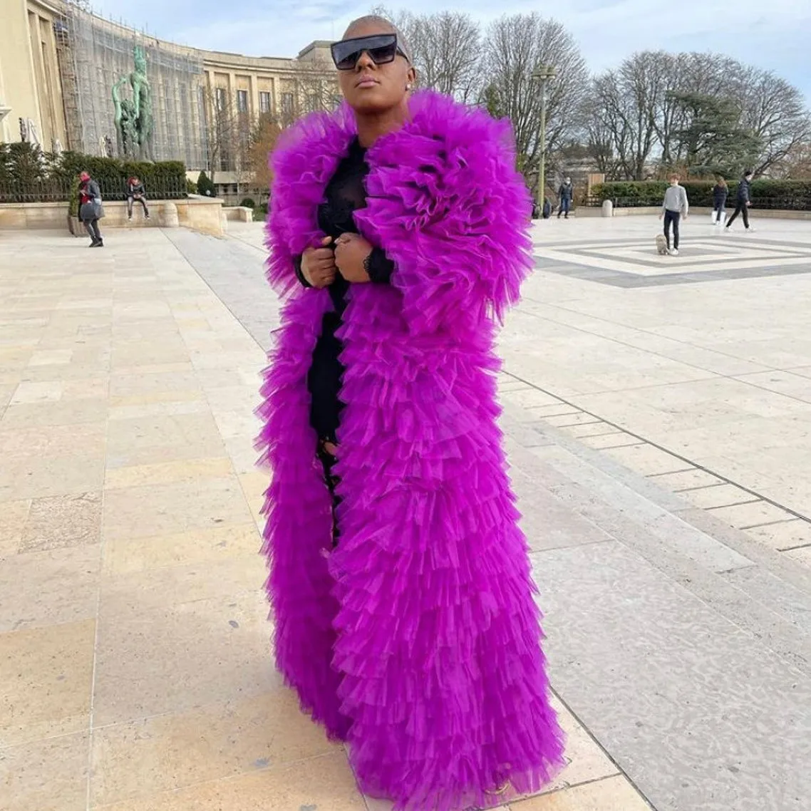 Уютное Пышное вечерние нее платье фиолетового цвета для фотосессии, Тюлевое пальто, длинный халат, пышный уличный халат с оборками спереди