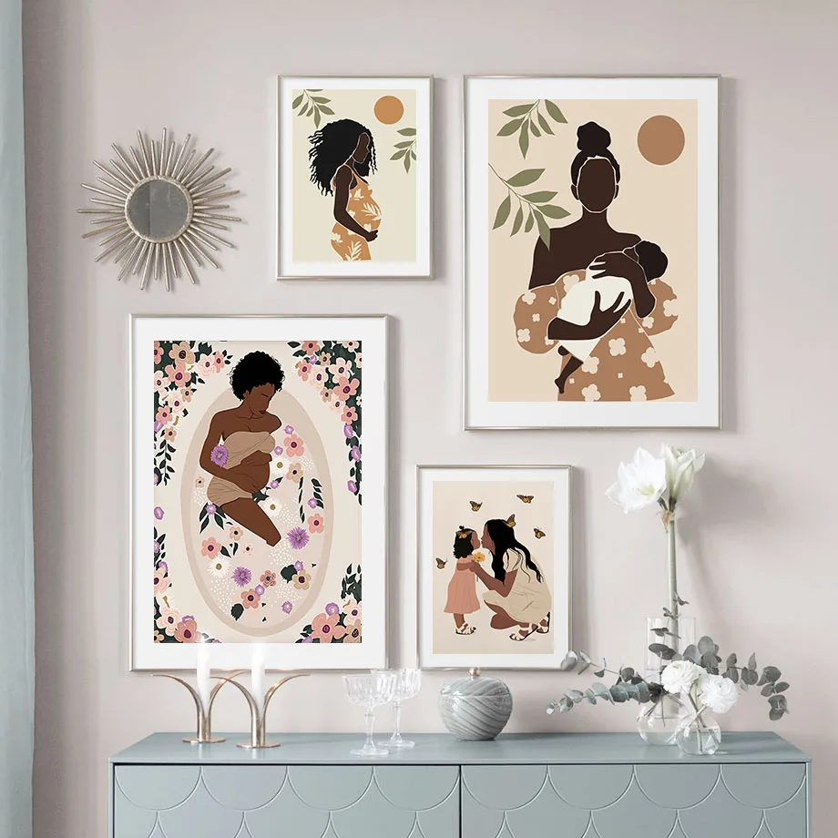 Настенная Картина на холсте с изображением цветка беременности мамы ребенка скандинавские постеры и принты настенные картины для украшения гостиной