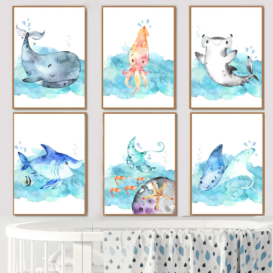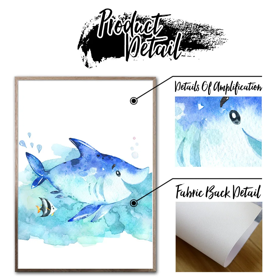 Настенная картина с морскими животными, голубыми китами, акулами, д...