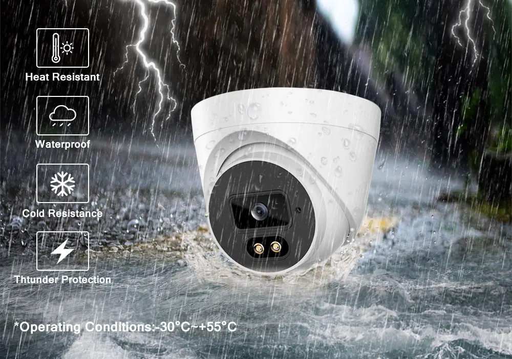 Наши камеры изготовлены из профессиональных водонепроницаемых материалов. Профессиональная защита от атмосферных воздействий IP66 обеспечивает стабильную производительность как внутри, так и снаружи помещений.