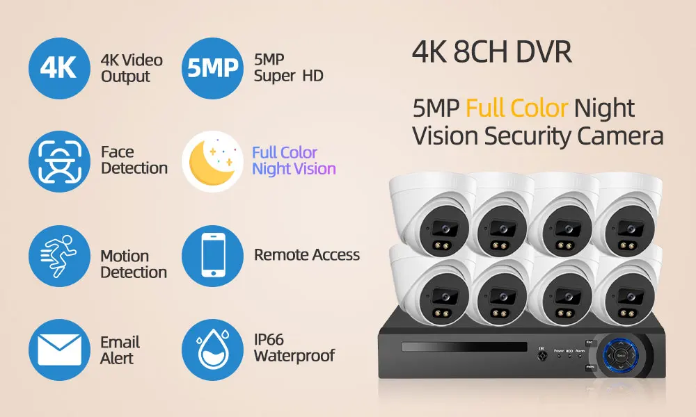 H.265 4K 8CH CCTV цифровой видеогеристратор обособленный для безопасности Камера Системы, 4 штукиНабор8 шт. 5MP на открытом воздухе, водонеропницаемые, Цвет Ночное видение Камера системы видеонаблюдения