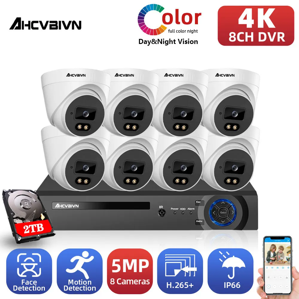 H.265 4K 8CH CCTV цифровой видеогеристратор обособленный для безопасности Камера Системы, 4 штуки/Набор/8 шт. 5MP на открытом воздухе, водонеропницаемые, Цвет Ночное видение Камера системы видеонаблюдения