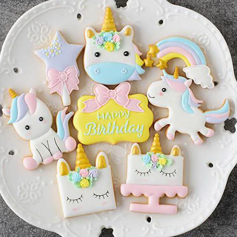 3D формочки для печенья в виде единорога, 6 шт.компл., мультяшная Пластиковая форма для помадка для бисквита, АБС-пластик, форма для выпечки, инструменты для украшения печенья