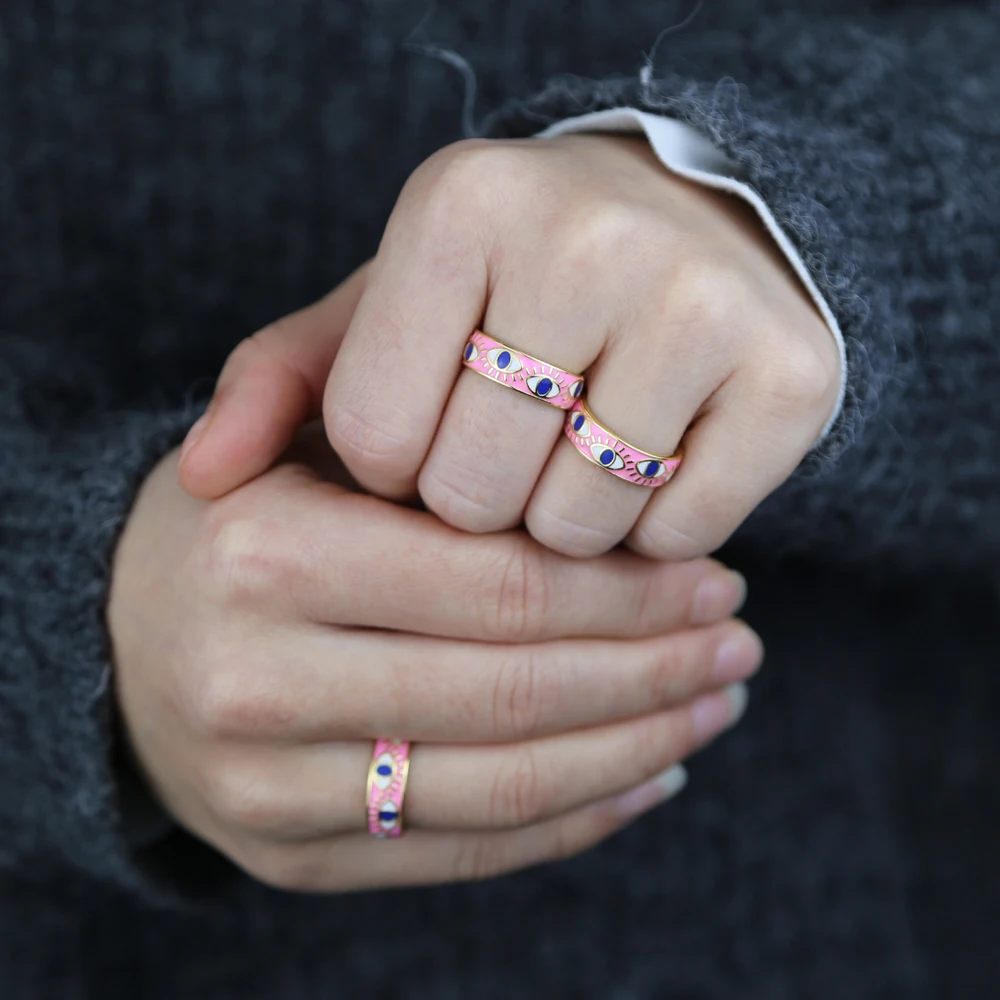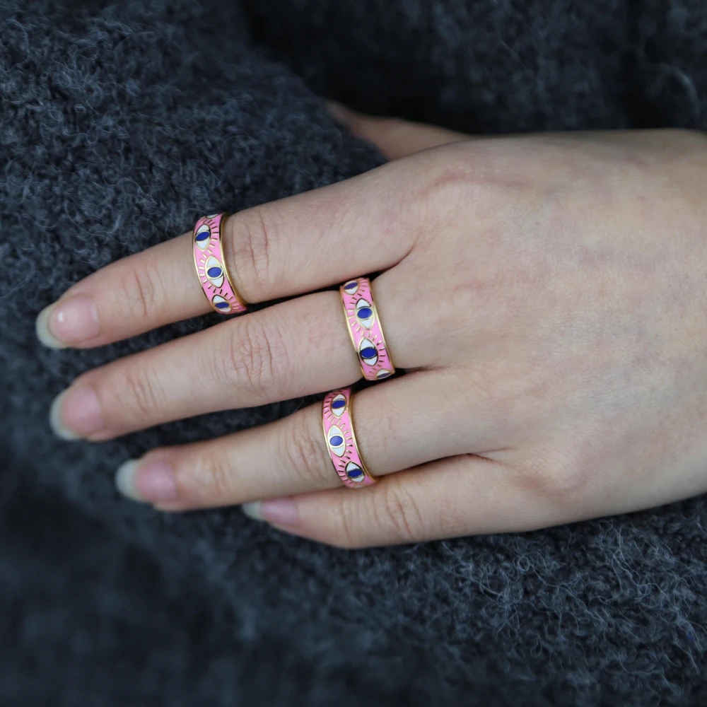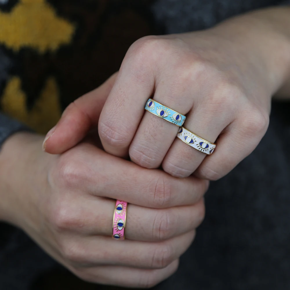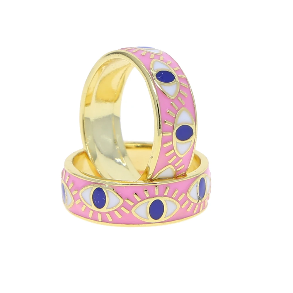 Новинка, золотистое розовое, белое, эмалированное, синее кольцо на палец в стиле бохо, богемные кольца с милыми глазами, Модные женские ювелирные изделия