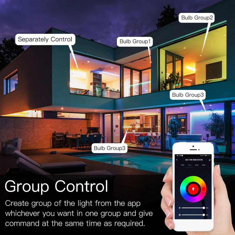 3. Групповое управление и управление вместе: вы можете установить много ламп на светильник в качестве группы и контролировать их в приложении, просто сделайте действия, чтобы контролировать их. А также вы можете поделиться им с семьей через приложение «Smart Life», чтобы они могли одновременно поделиться интеллектуальным контролем!