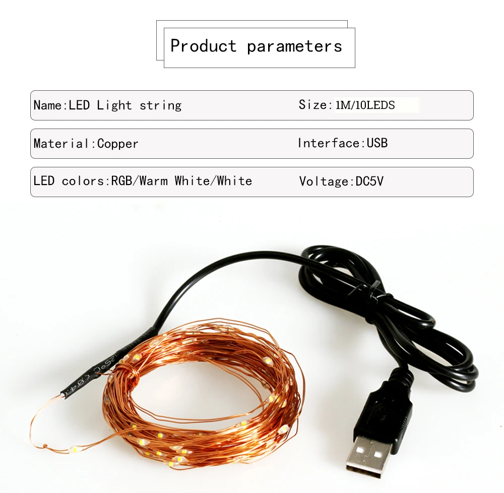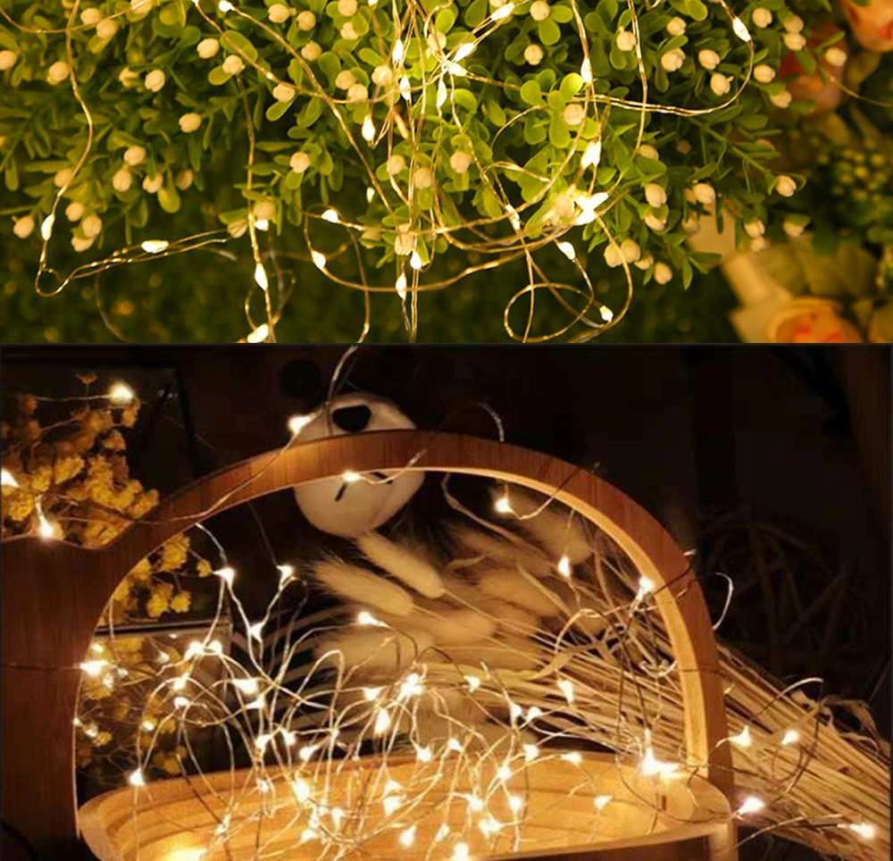 Светодиодная гирлянда с медным проводом, 5 в постоянного тока, USB, 5 м, 10 м, 20 м, праздничное освещение, Сказочная гирлянда для рождественской елки, украшение для свадебной вечеринки