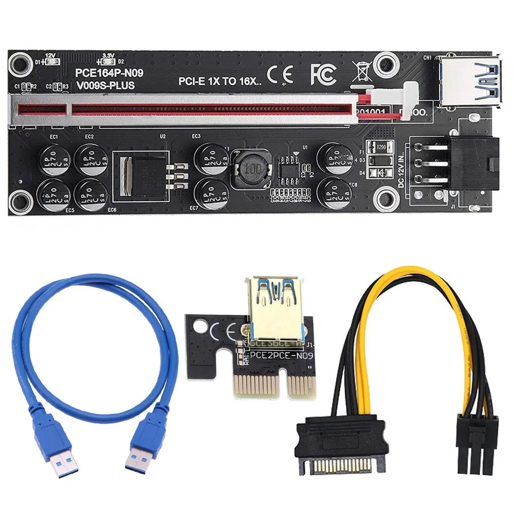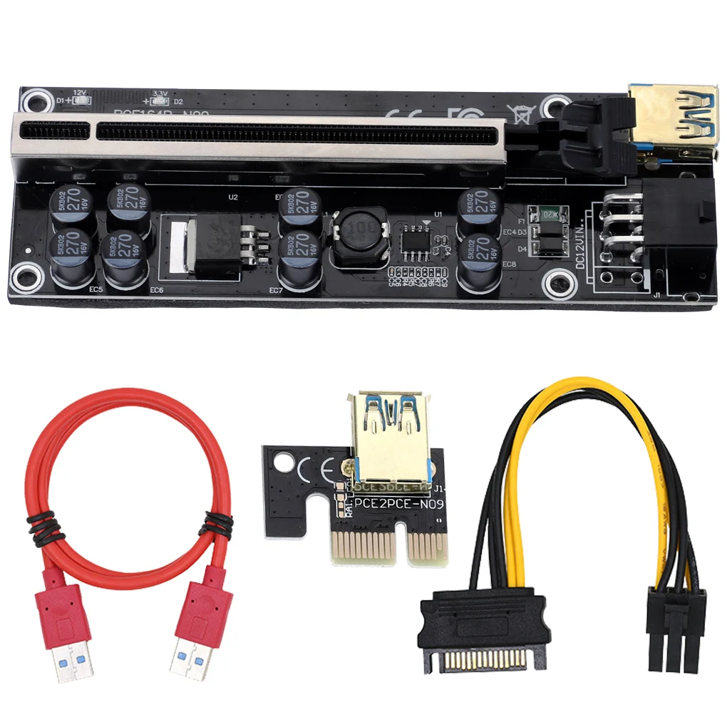Плата адаптера PCI-E PCIE Riser 009s 6in, 6 шт., карта адаптера PCI Express Molex USB 3,0, кабель 1X 16X, удлинитель для майнинга биткоинов