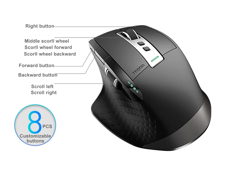 ✅Интеллектуальное переключение между несколькими устройствамиКлавиатура и мышь интеллектуально подключаются к рабочему устройству. Они могут отдельно подключаться до 4 устройств, и переключаться между ними с легкостью. Они упрощают сложное использование на межплатформе и отвечают многозадачным требованиям.✅Переключение между Bluetooth 3,0, 4,0 и 2,4GИнтеллектуальный переключатель между Bluetooth 3,0, 4,0 и 2,4 ГГц обеспечивает стабильную беспроводную передачу. Вы по-прежнему можете использовать комбо независимо от нехватки USB-порта или потери приемника.✅Ультратонкие плавающие ключи chiclet4,0 мм на самом тонком, основание из нержавеющей стали и панель из алюминиевого сплава, приносят вам комфортные тактильные; Точный ножничок структура клавиш позволяет с легкостью нажимать кнопки.✅Точность на нескольких поверхностяхВысокопроизводительный лазерный двигатель позволяет использовать мышь на нескольких поверхностях. Наслаждайтесь высокоскоростным откликом и непревзойденной точностью.✅Полностью регулируемый датчик DPIТочность до последнего пикселя: Благодаря регулируемому датчику DPI точность больше не остается на случай. Регулируется от 600 DPI до 3200 DPI, вы можете адаптировать его в соответствии с вашими предпочтениями.✅Экологически чистая перезаряжаемая батареяБлагодаря встроенному экологичному литиевому аккумулятору мыши вы сможете наслаждаться длительным сроком службы батареи при полном заряде. Избавляет от необходимости часто заменять батарейки.Системные требования:Windows XP/Vista/7/8/10 или более новая версия, USB порт, Mac OS.Примечание 1: боковое колесо прокрутки по умолчанию функция поворота влево и вправо. Можно настроить другие функции с помощью драйвера.Примечание 2:WIN driver:8 кнопок можно настроить в режиме 2,4G, 4 кнопки можно настроить в режиме bluetooth 4,0.Примечание 3: Драйвер MAC: 5 кнопок можно настроить в режиме 2,4G, 5 кнопок можно настроить в режиме bluetooth 4,0.