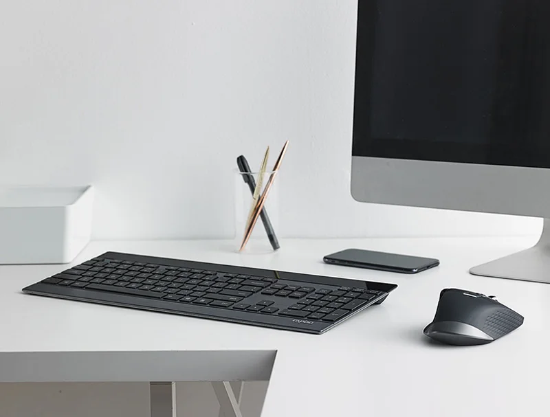 Rapoo MT980S многорежимная тонкая беспроводная металлическая клавиатура и перезаряжаемая лазерная мышь комбо Bluetooth 3,0, 4,0 и 2,4 ГГц переключение между 4 устройствами