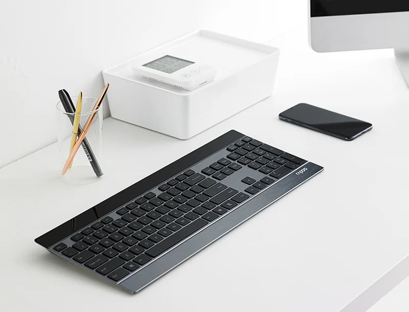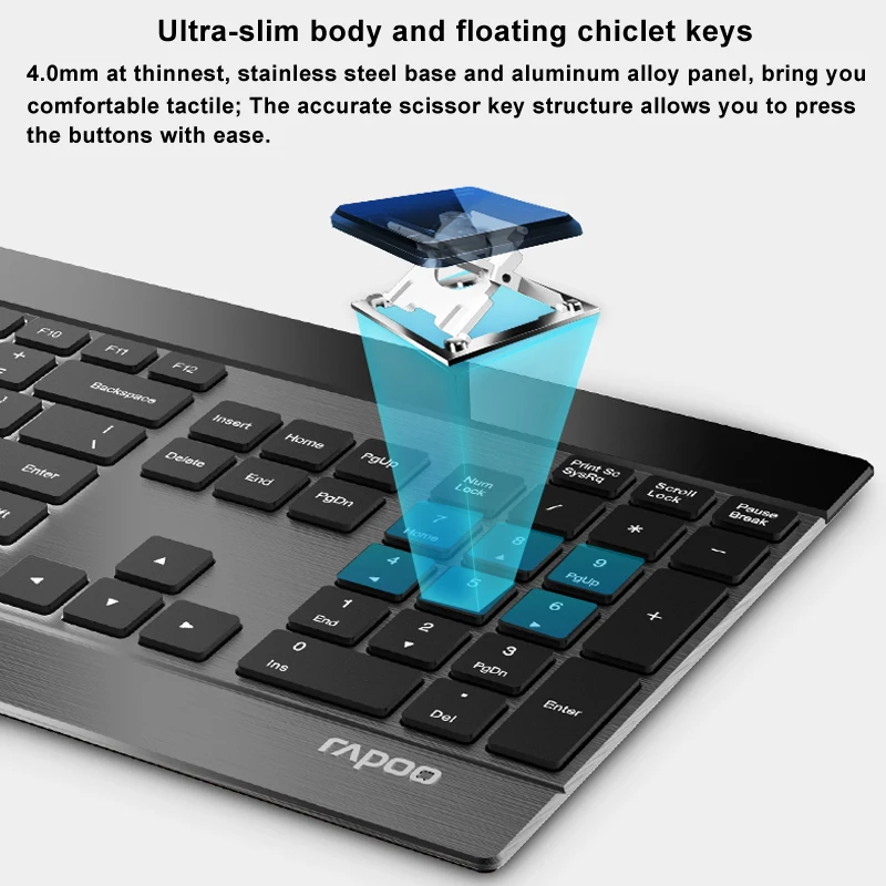 Беспроводная Тонкая металлическая клавиатура Rapoo, перезаряжаемая лазерная мышь, Bluetooth 4,02,4ГГц, переключение между 4 устройствами, несколько режимов