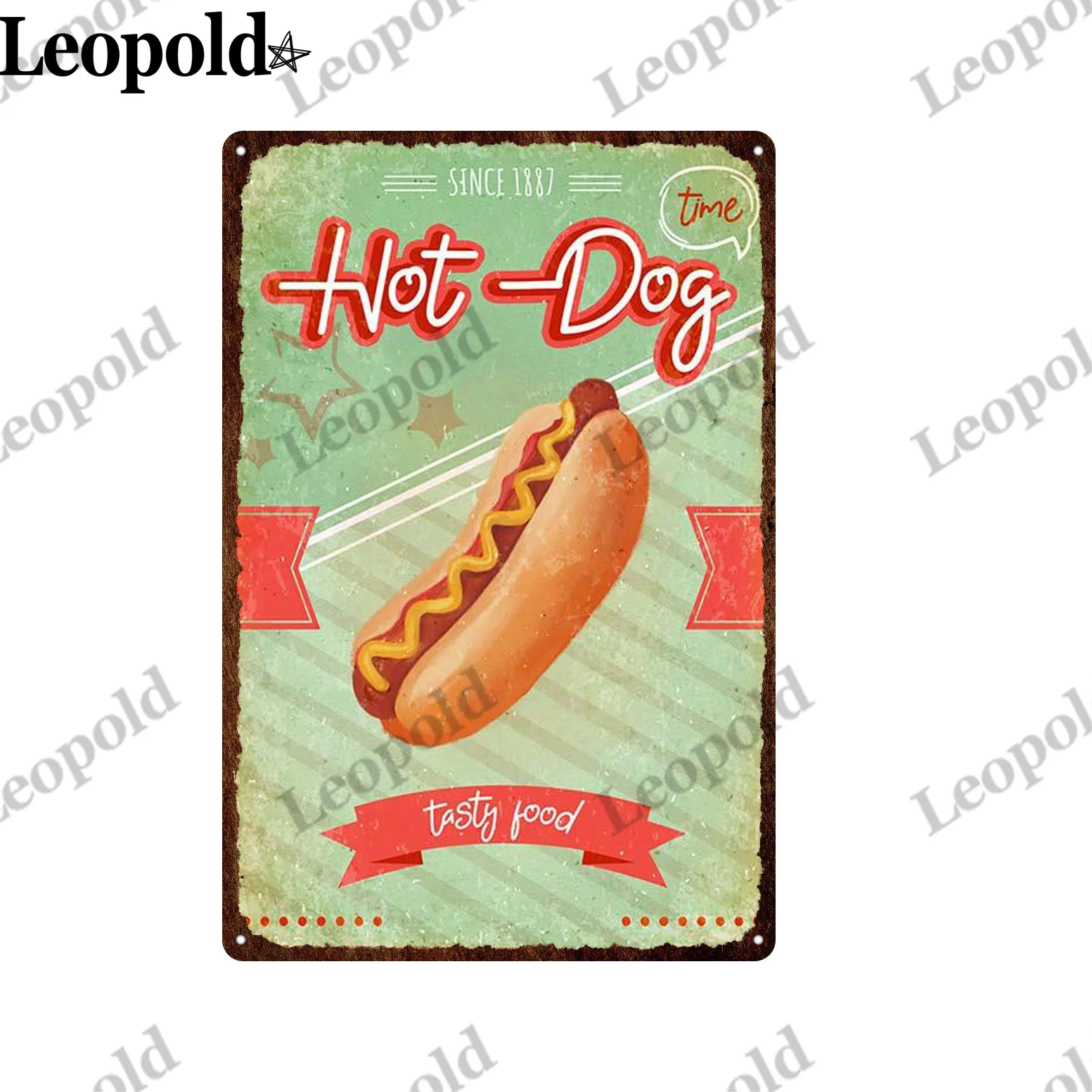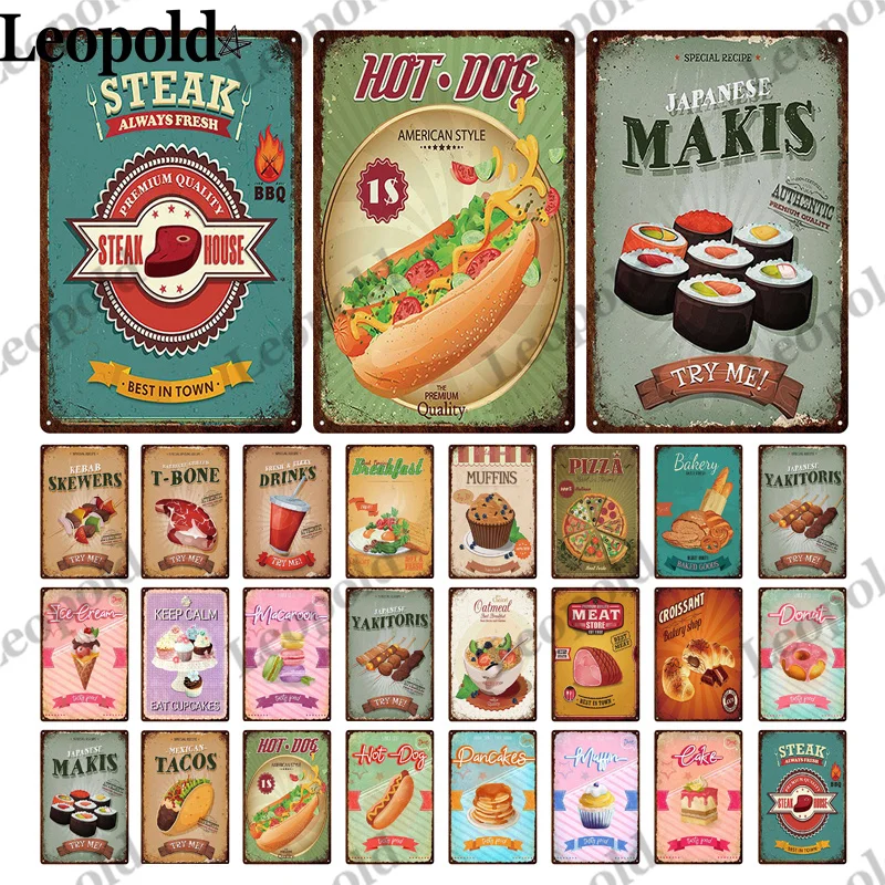 Винтажный металлический постер с едой, кофе, хот-дог, сыр, жестяная...