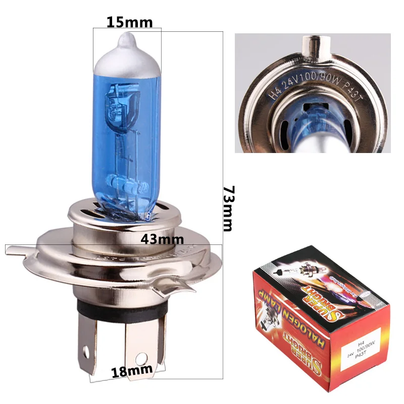 10 шт. 24 В H1 H3 H4 H7 100 Вт галогенные супер яркие белые Противотуманные фары галогенная лампа Высокая мощность Автомобильные фары автомобильная лампа