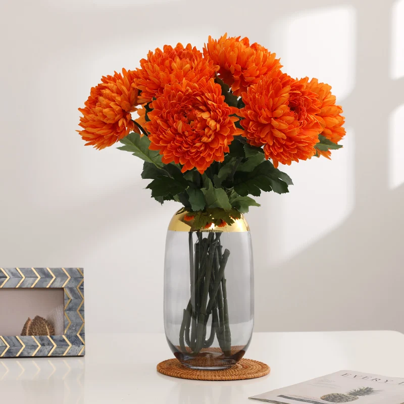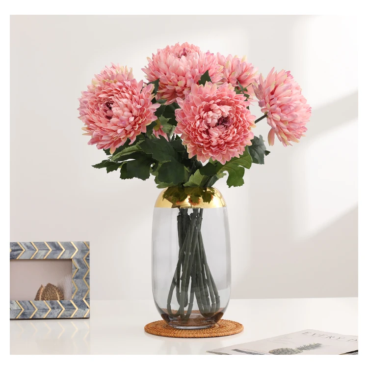 Одинарный ананас Хризантема искусственный цветок в форме искусственных цветов, шелковое платье с цветочным узором в виде большого цветка крытый гостиная украшение стола