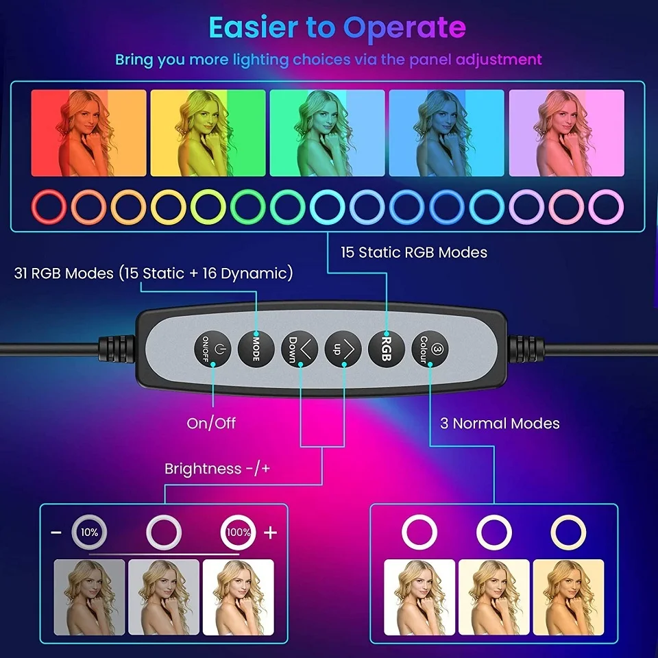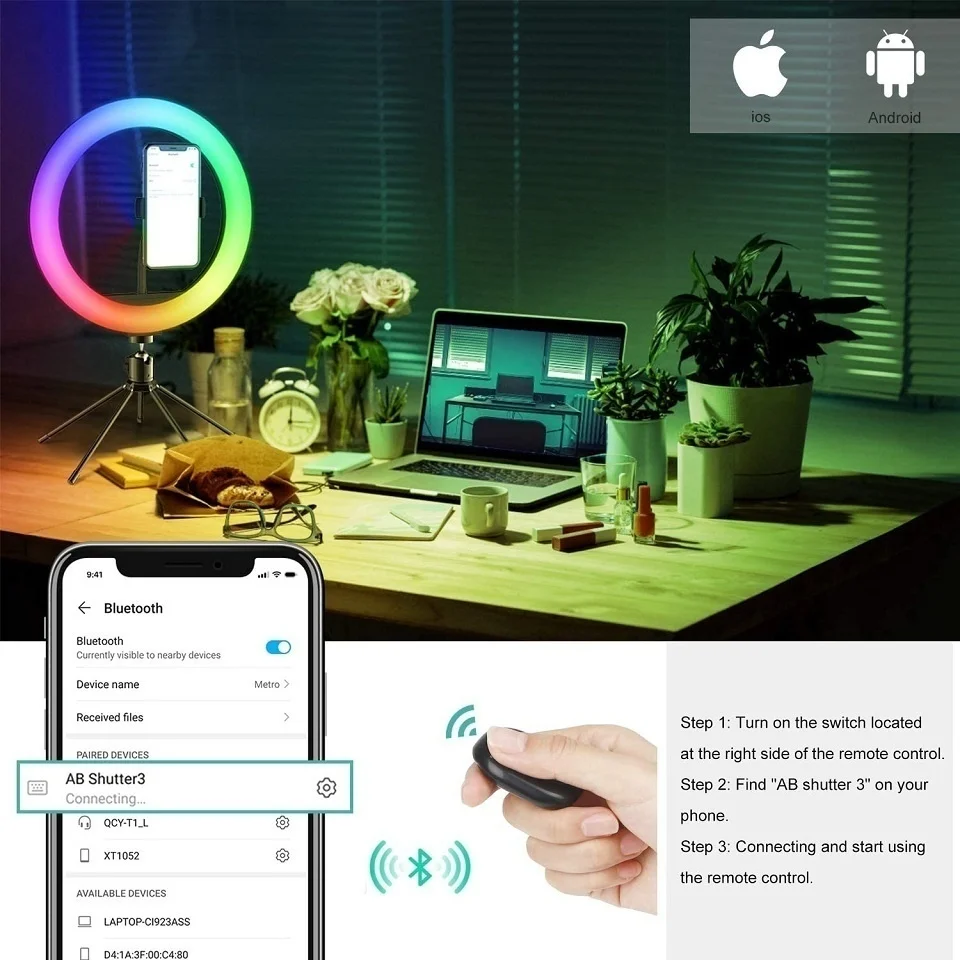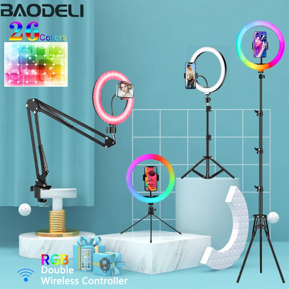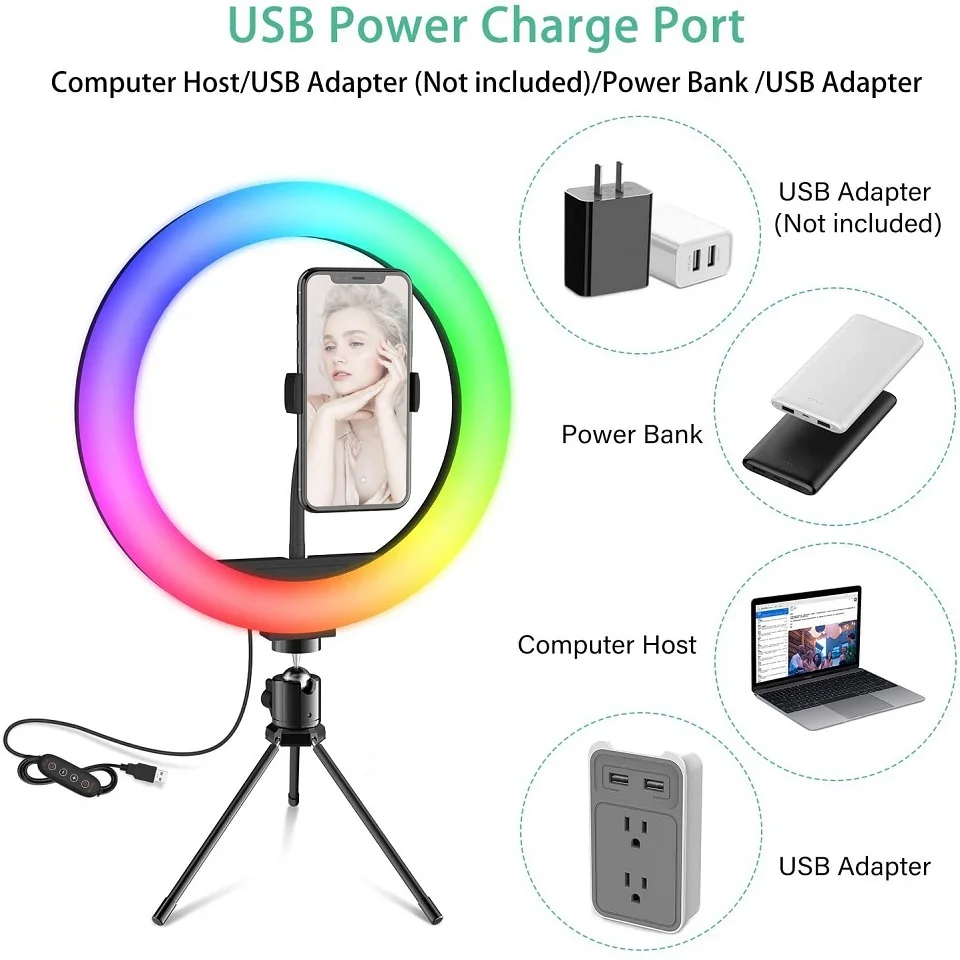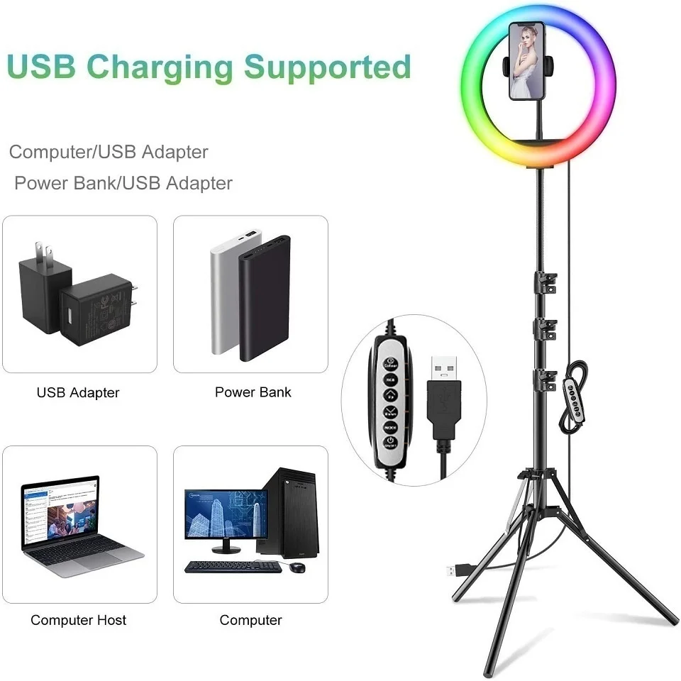 Кольцевой светильник для селфи 10 дюймов RGB, штатив для телефона, держатель, кольцевой светильник для фотосъемки, внешний свет, Трипод для макияжа