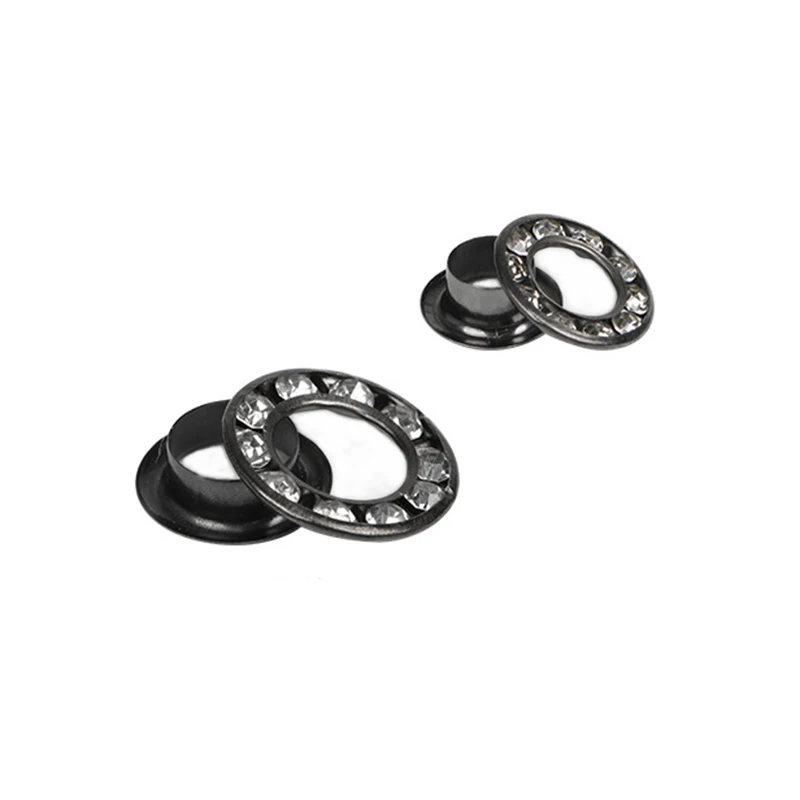200 комплектов, серебристые/черные стразы, люверсы, латунные люверсы для кожевенного ремесла, обувь, сумка, парусиновая одежда, аксессуары, комплект для втулки